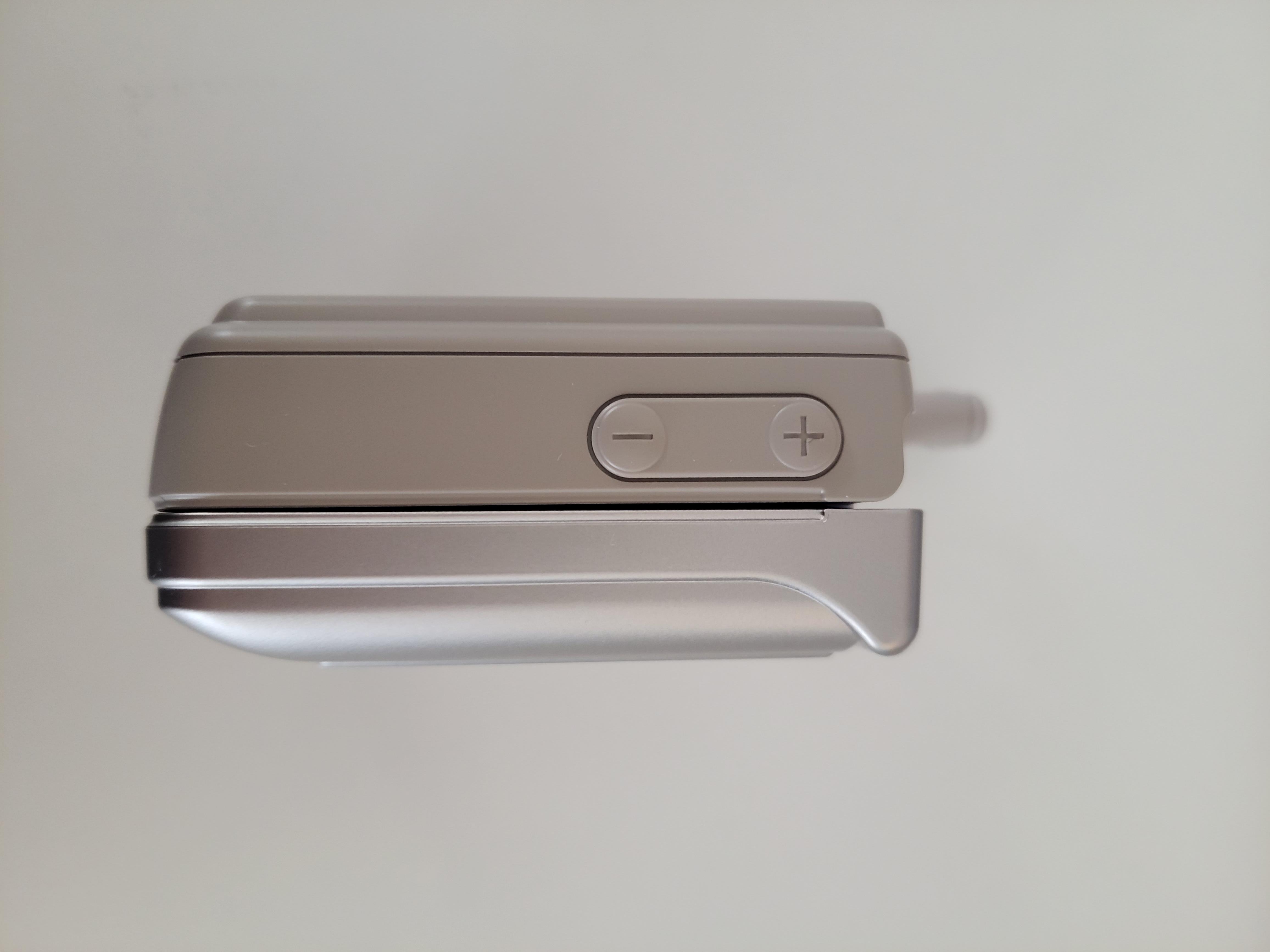 옆에서 보면, 두께감이 꽤나 있습니다. 그리고 갤럭시 버즈 케이스 자체가 작기 때문에, 갤럭시 버즈 애니콜 케이스도 폴더폰처럼 길게 빼진 못했네요. 너무 길어지면 휴대성에 문제가 생길테니 감성과 실용성 사이에서 적당히 타협한 것 같습니다. 디테일하게 볼륨 버튼까지 살린 점은 아주 마음에 듭니다.