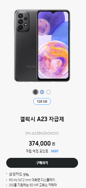 갤럭시 A23이라는 네이밍 대비 사양은 전반적으로 나쁘지 않아 보입니다. 그럼 갤럭시 A23 가격은 어떻게 될까요?