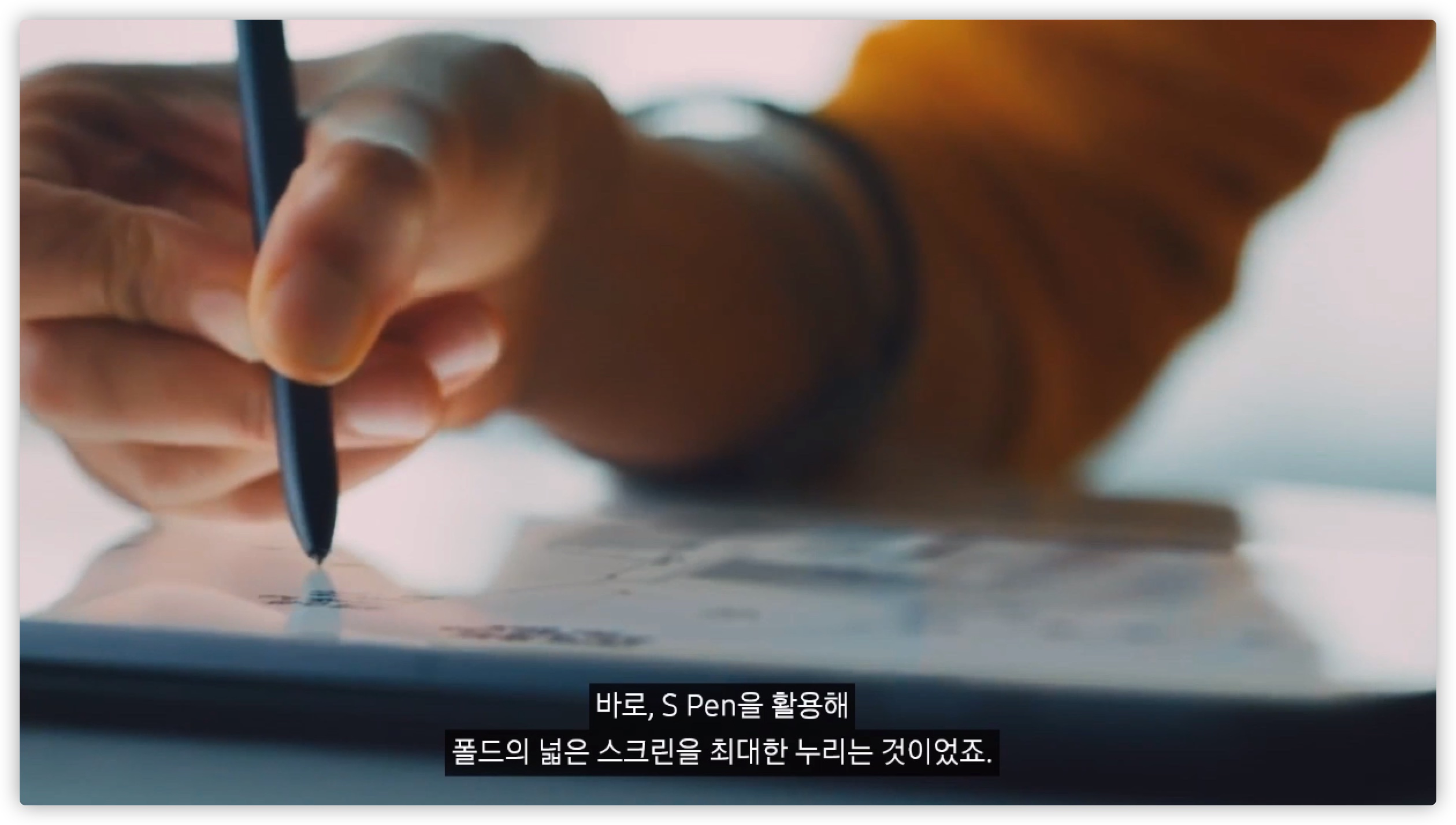 '접어서 휴대하는 태블릿'에 좀 더 가까운 갤럭시 Z 폴드 시리즈는, 펜 지원 여부에 따라 그 생산성과 활용성이 유의미하게 차이가 나는데, 이번 갤럭시 Z 폴드3에서 S펜 지원을 구현하였습니다. 이번 언팩에서 어떻게 S펜 사용을 구현했는지 설명하는데, 다시 한 번 박수가 절로 나왔습니다. 언팩 자막에 나온 "삼성 개발자의 열정과 헌신"이라는 단어가 이번처럼 와닿고 감동적인 적이 없었던 것 같습니다.