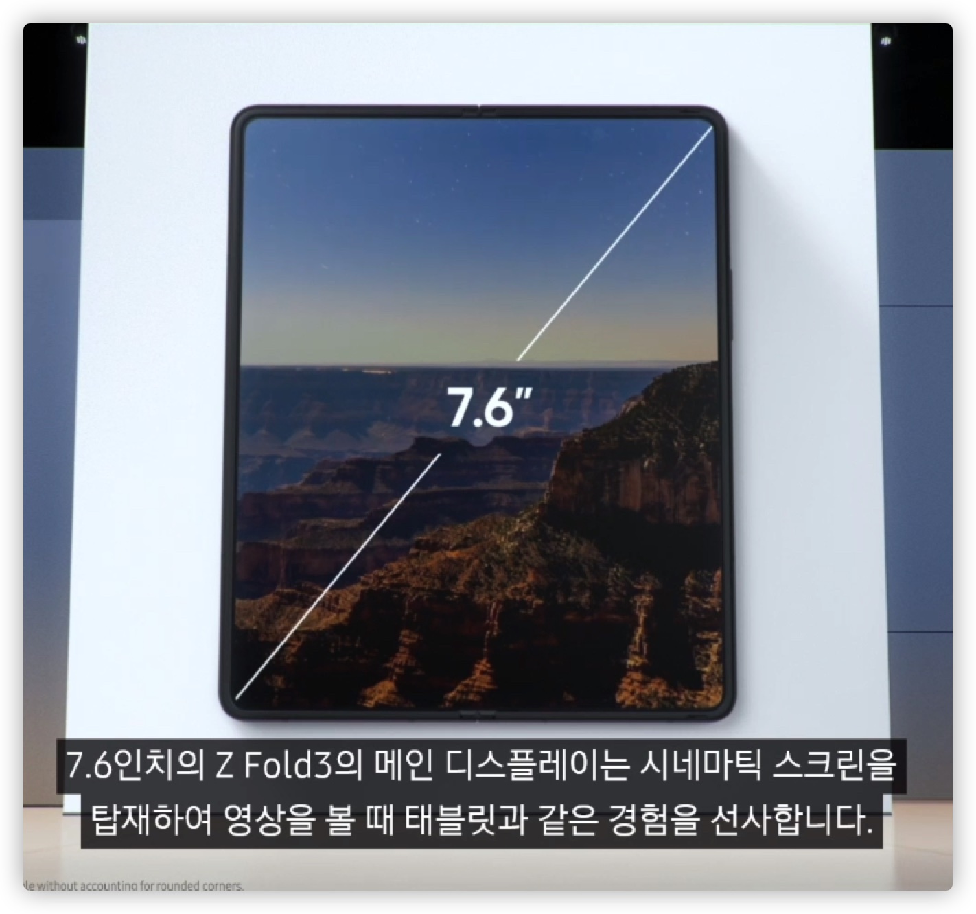 7.6인치의 갤럭시 Z 폴드3 내장 디스플레이는 전작과 동일하게 120hz 주사율을 지원하지만, UDC(Under Display Camera)를 지원하여 훨씬 더 몰입감 있는 대화면을 경험할 수 있게 되었습니다.