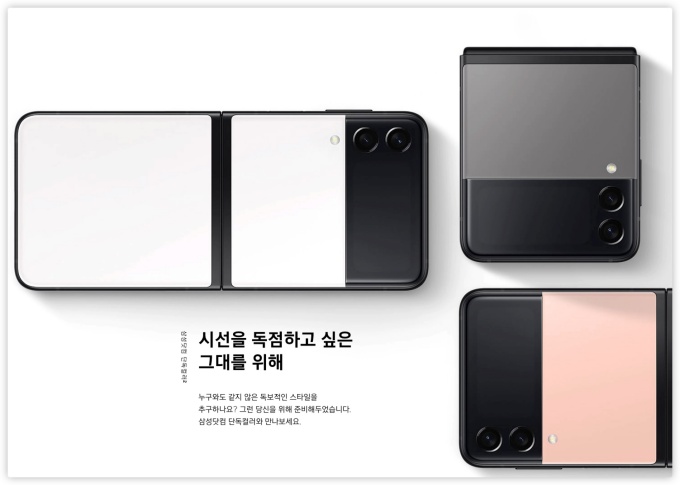 요즘 삼성 가전에서 인기몰이를 하고 있는 비스포크 가전 스러운 느낌도 살짝 있지만, 그것은 아마도 컬러 때문에 그런 느낌이 드는 것 같습니다. 비스포크 디자인 기조나 컬러감은 시장에서 좋은 반응을 얻고 있기 때문에, 설령 비스포크 느낌이 플립3에서 난다 해도 이상할 건 없어 보입니다.