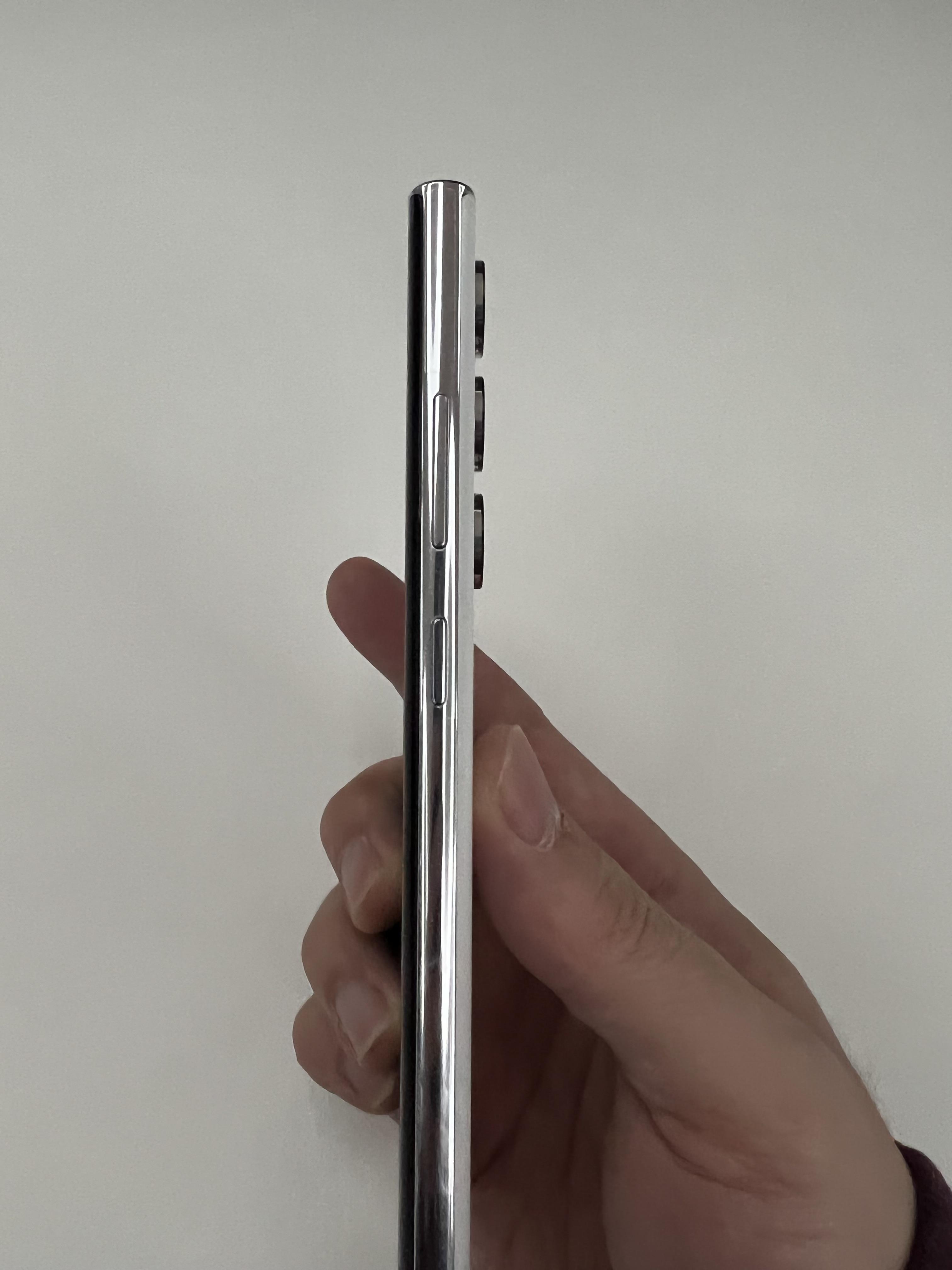우측면에는 전원버튼과 볼륨버튼이 자리하고 있으며, 갤럭시S22 일반이나 플러스 모델과는 다르게 엣지 형태이기 때문에 후면 유리에도 엣지가 들어가 있습니다. 그 덕분에 크기 대비 그립감은 좋은 편입니다.