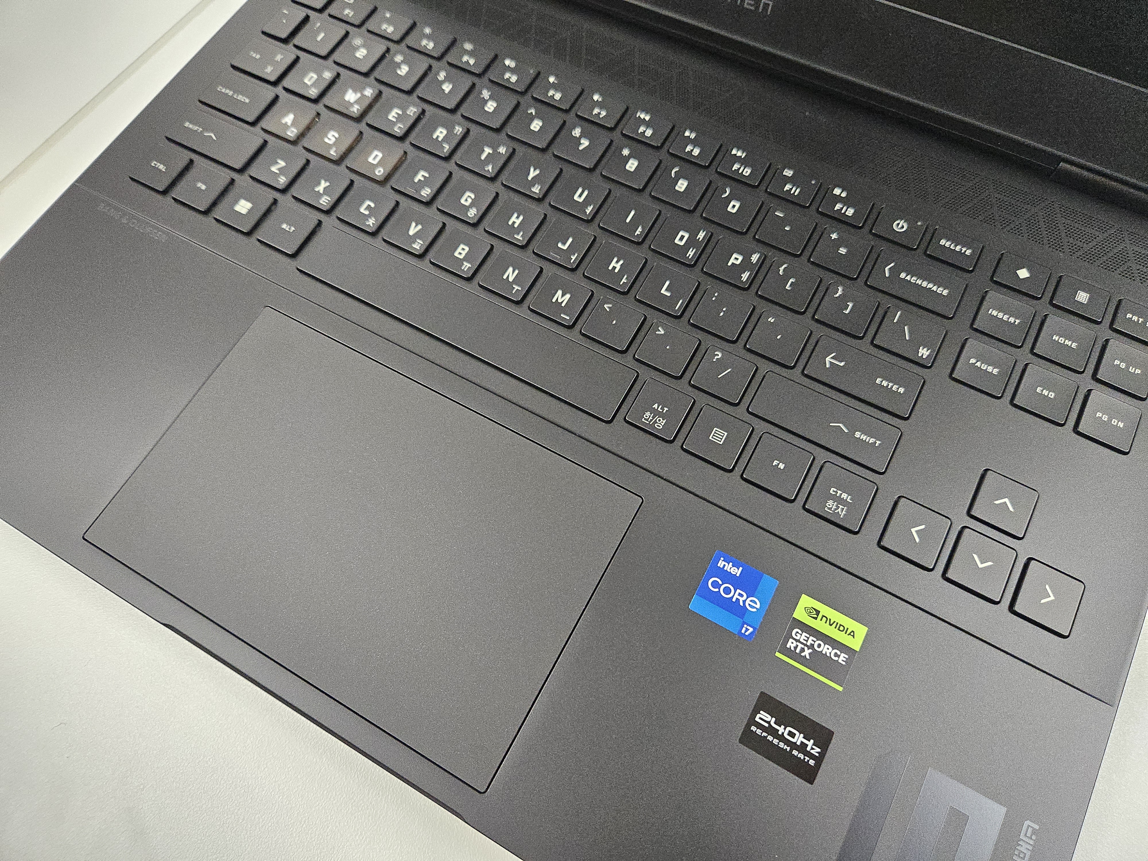키보드 느낌은, HP 제품답게 적당히 쫀쫀하고 나쁘지 않았습니다. 다만 키캡의 촉감은 개인적으로 약간 아쉬움이 있었습니다. 고급스럽다는 느낌은 별로 없지만 키 감과 키 배열은 마음에 들었습니다.