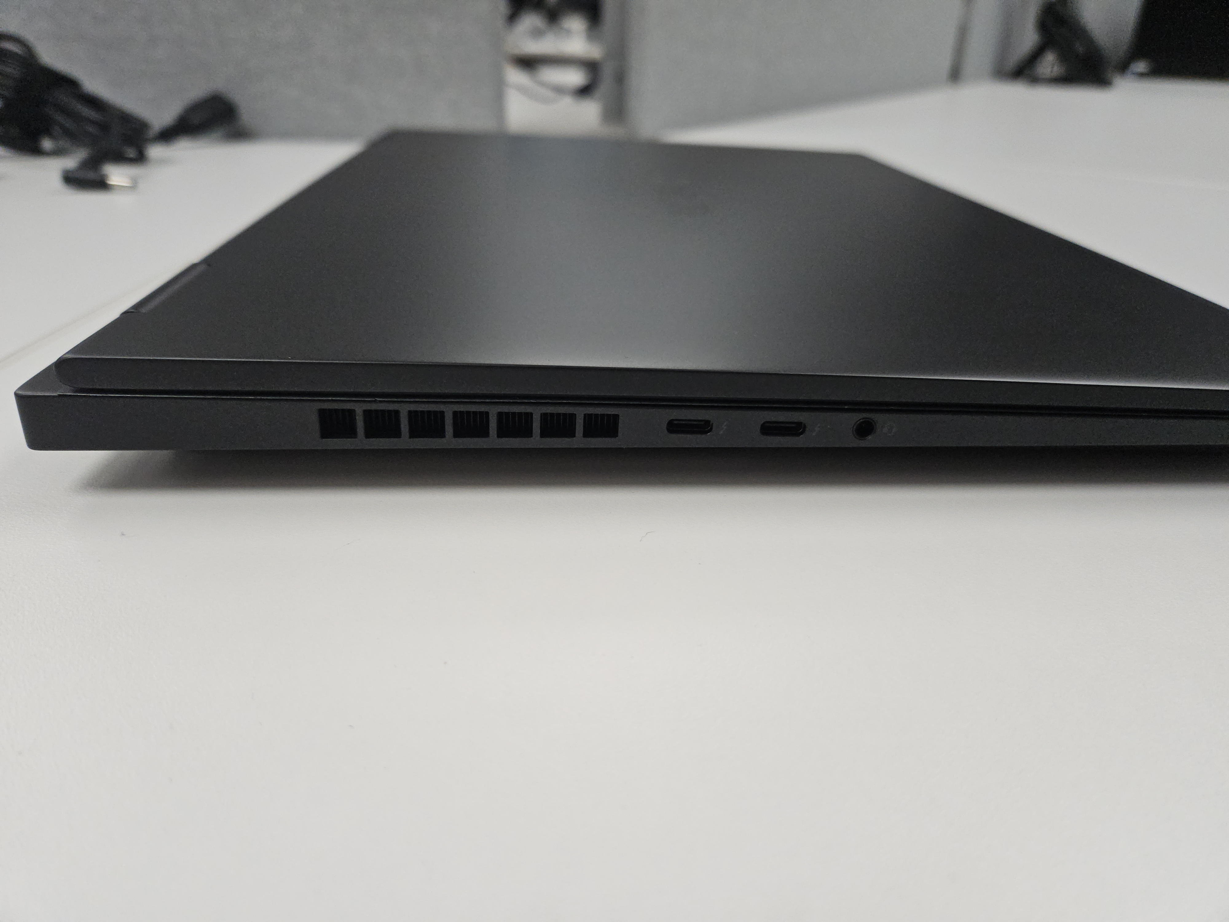 물론 경량형 노트북이니만큼 키보드와 상판으로 올라오는 열로 인해 뜨끈뜨끈합니다. 하지만 소재 덕분인지 레이저블레이드 16 RTX4080 모델보다도 좀 덜 뜨거운 체감이고, ASUS ROG 제피러스보다는 확연하게 덜 뜨거운 느낌이었습니다.
