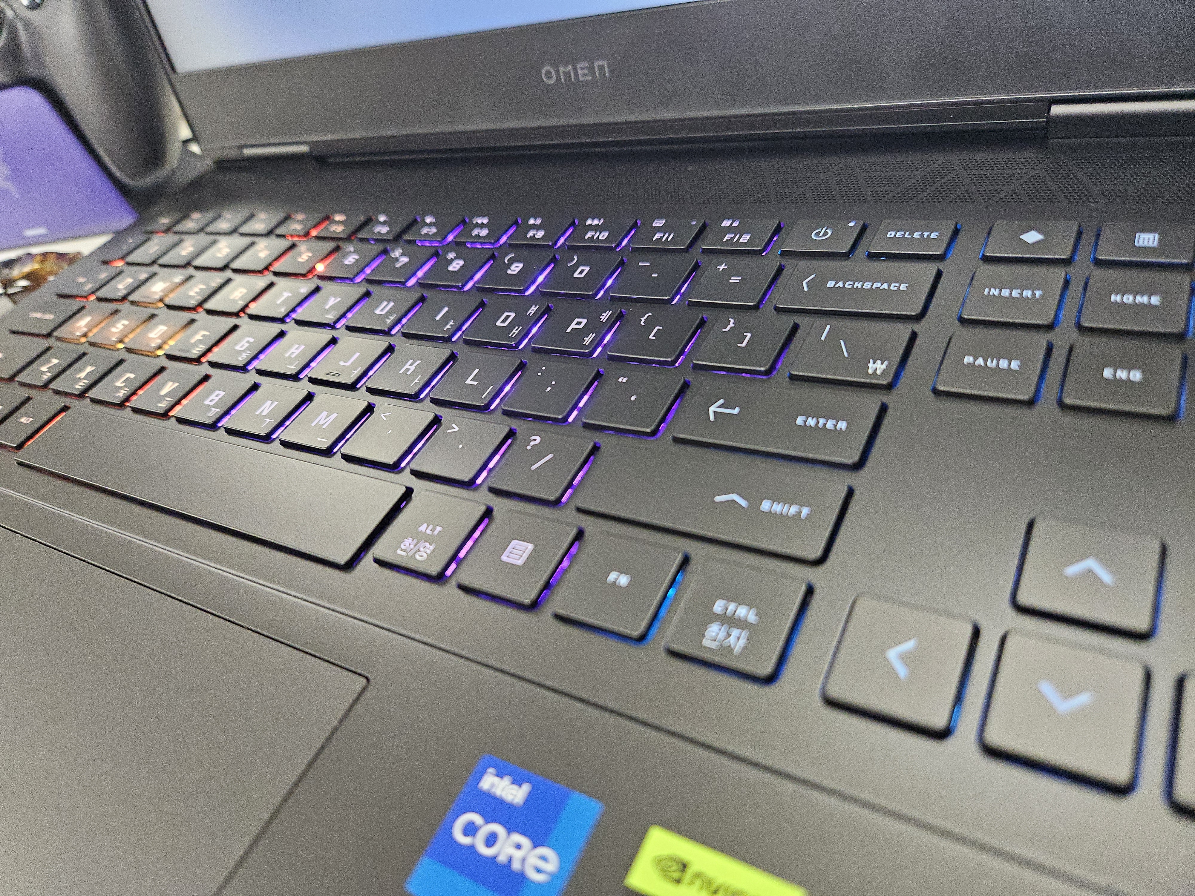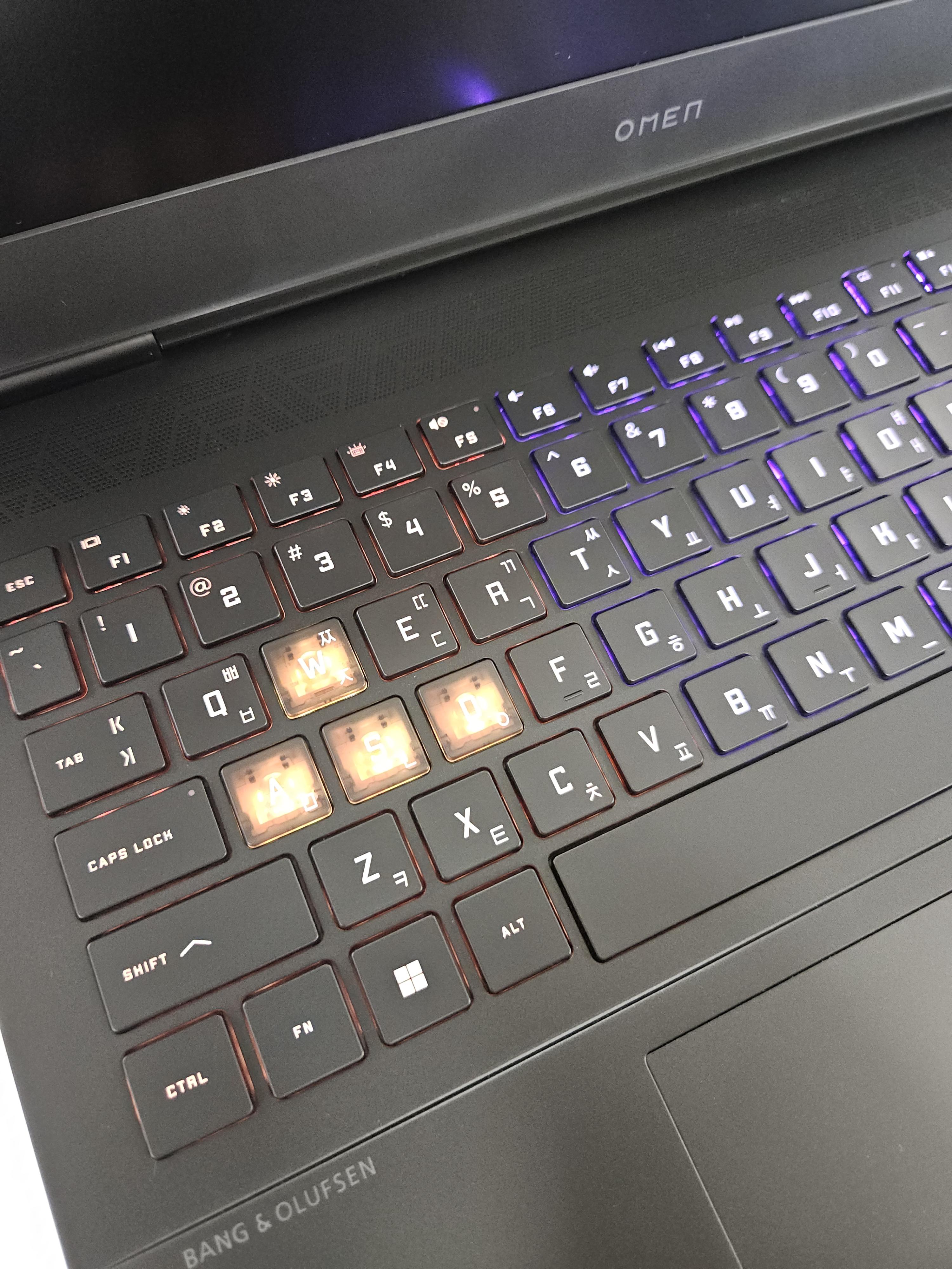 - 예전 오멘 보다는 조금 더 나아진 듯한 힌지, 180도 평평하게 펼 수 있음