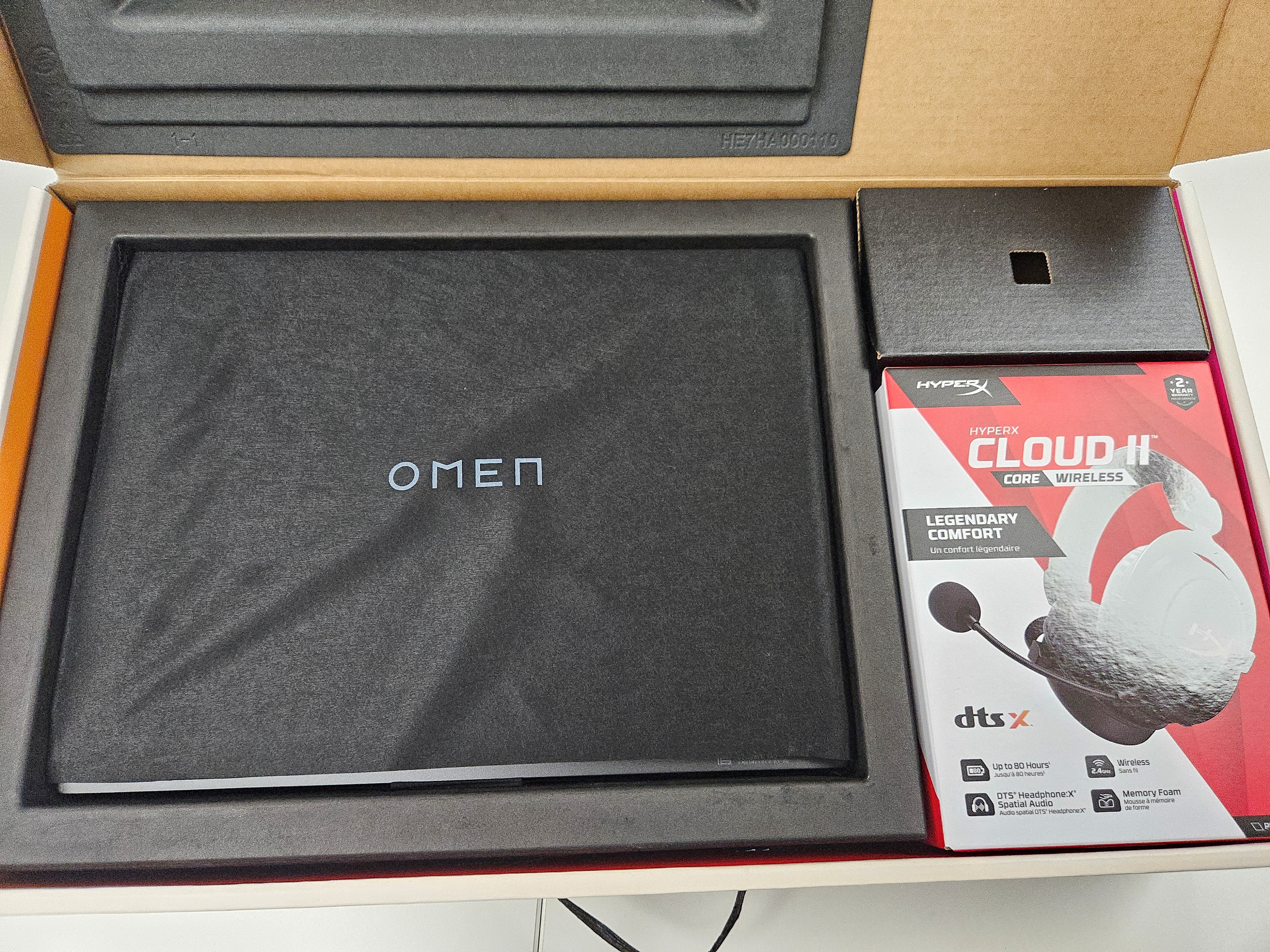 박스를 열면 오멘 본체와 함께 기본 구성으로 들어있는 hyper X Cloud 2 헤드셋이 모습을 드러냅니다.