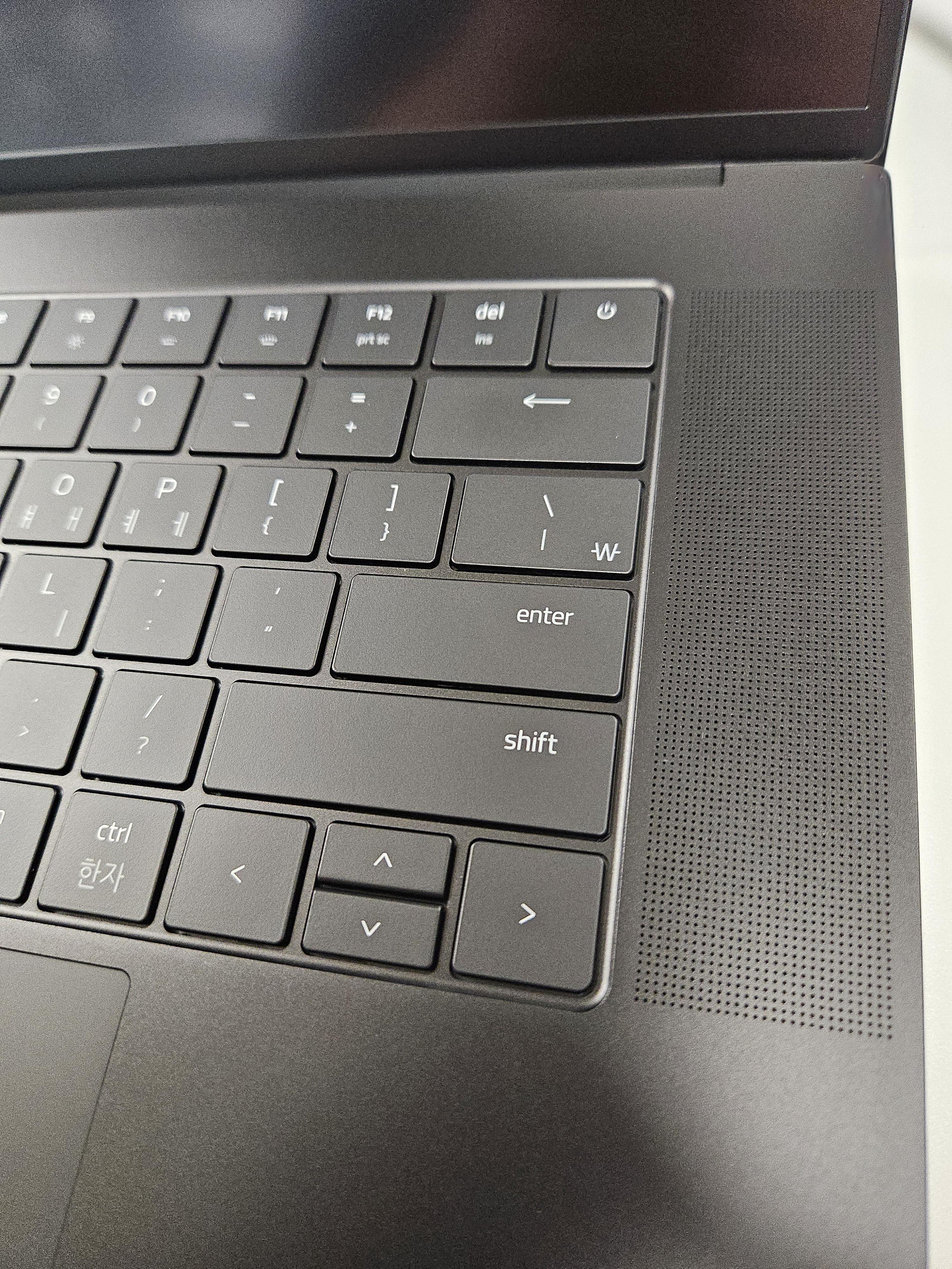 마치 맥북처럼 키보드 좌우 양 사이드에 섬세하게 타공이 되어있는 스피커가 자리하고 있습니다.