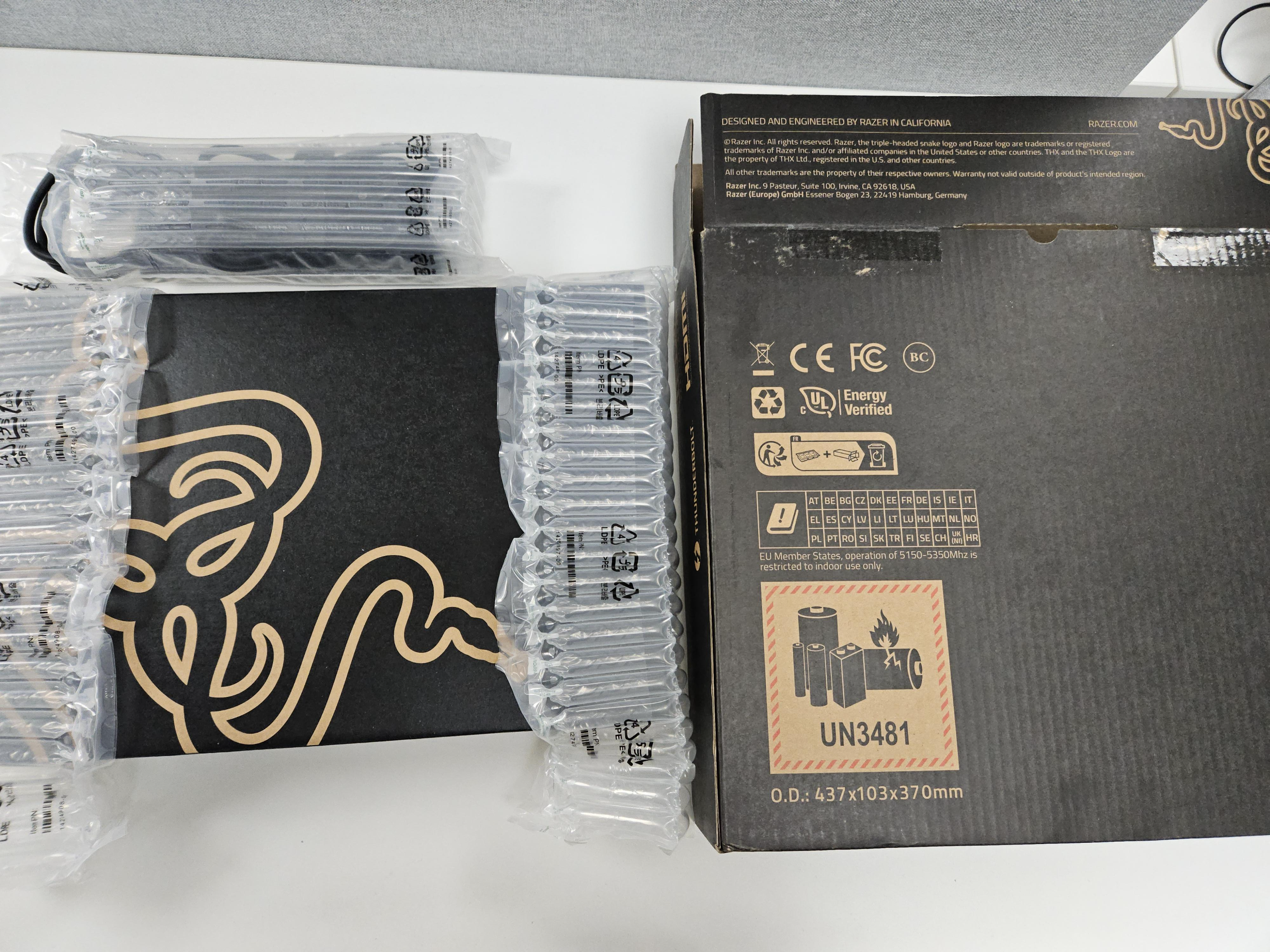 겉 박스를 열어보니, 에어캡과 함께 레이저 블레이드 16 본체가 들어있는 박스, 그리고 어댑터가 있습니다.
