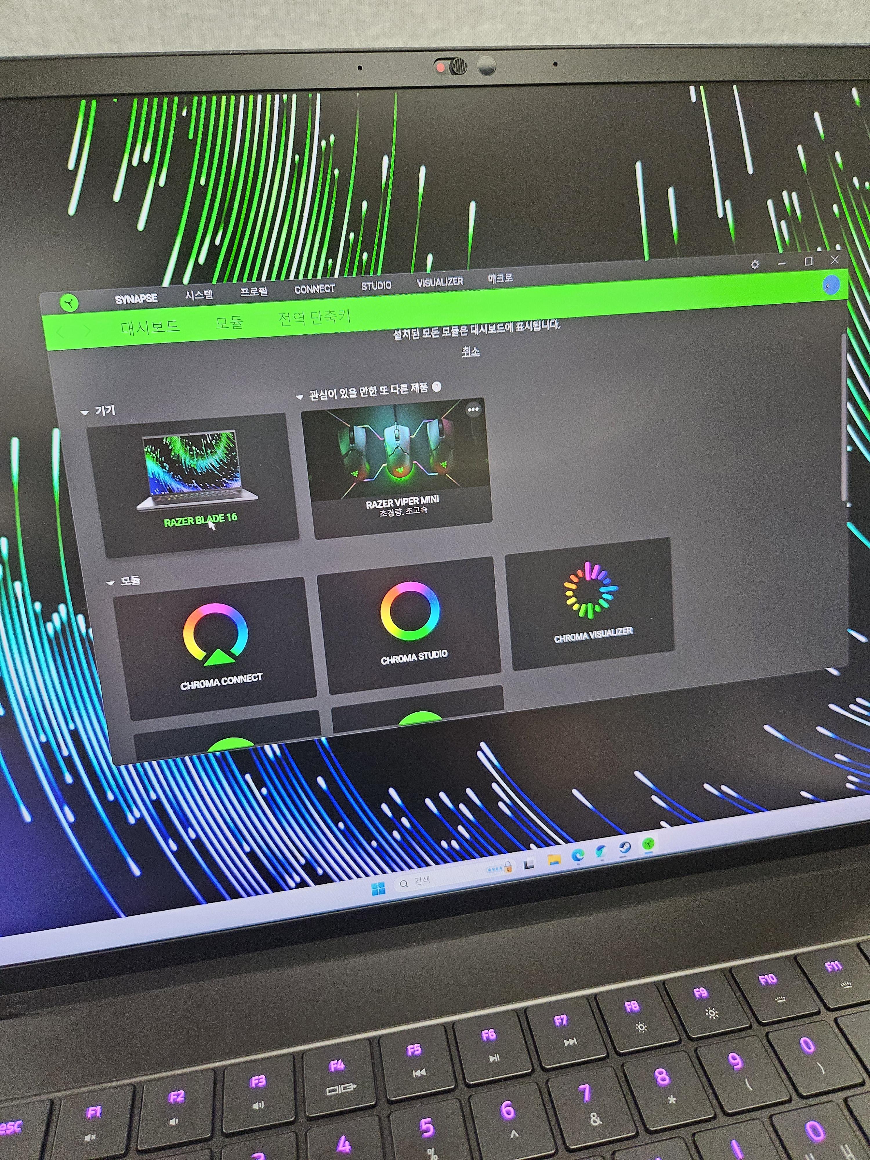 세컨으로 사용하고 있는 ASUS ROG 제피러스 G16의 경우, 아머리 크레이트(Armoury Crate)라는 ASUS 전용 프로그램이 있는데, 렉도 심하고 프로그램이 굉장히 무겁고 답답하였는데 레이저 시냅스는 아머리 크레이트보다는 조금 더 낫더라구요.
