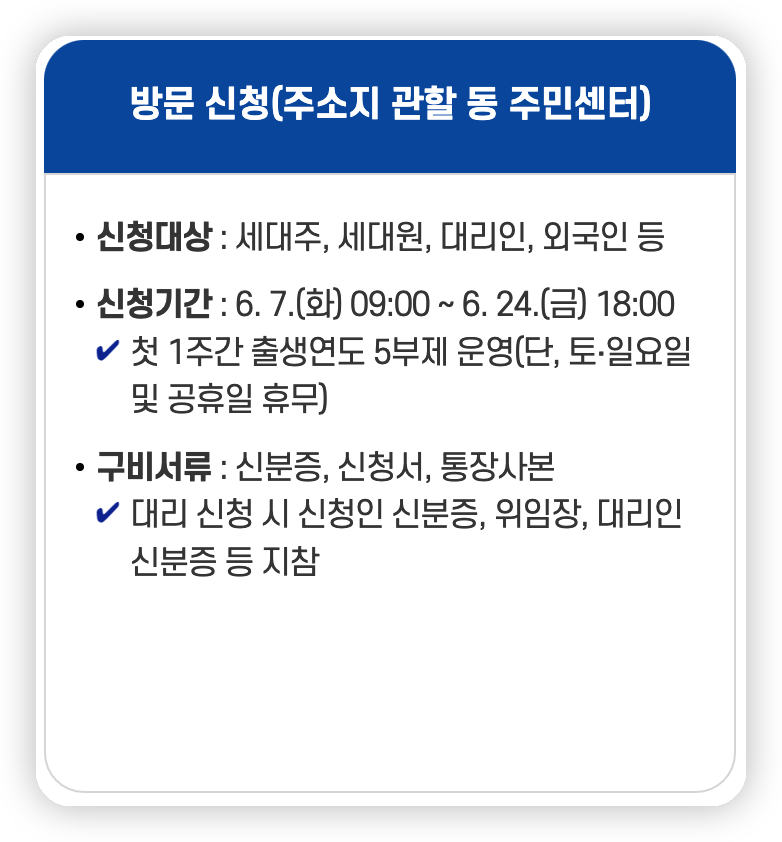 - 오프라인 방문 신청 : 2022년 6월 7일 ~ 2022년 6월 24일까지