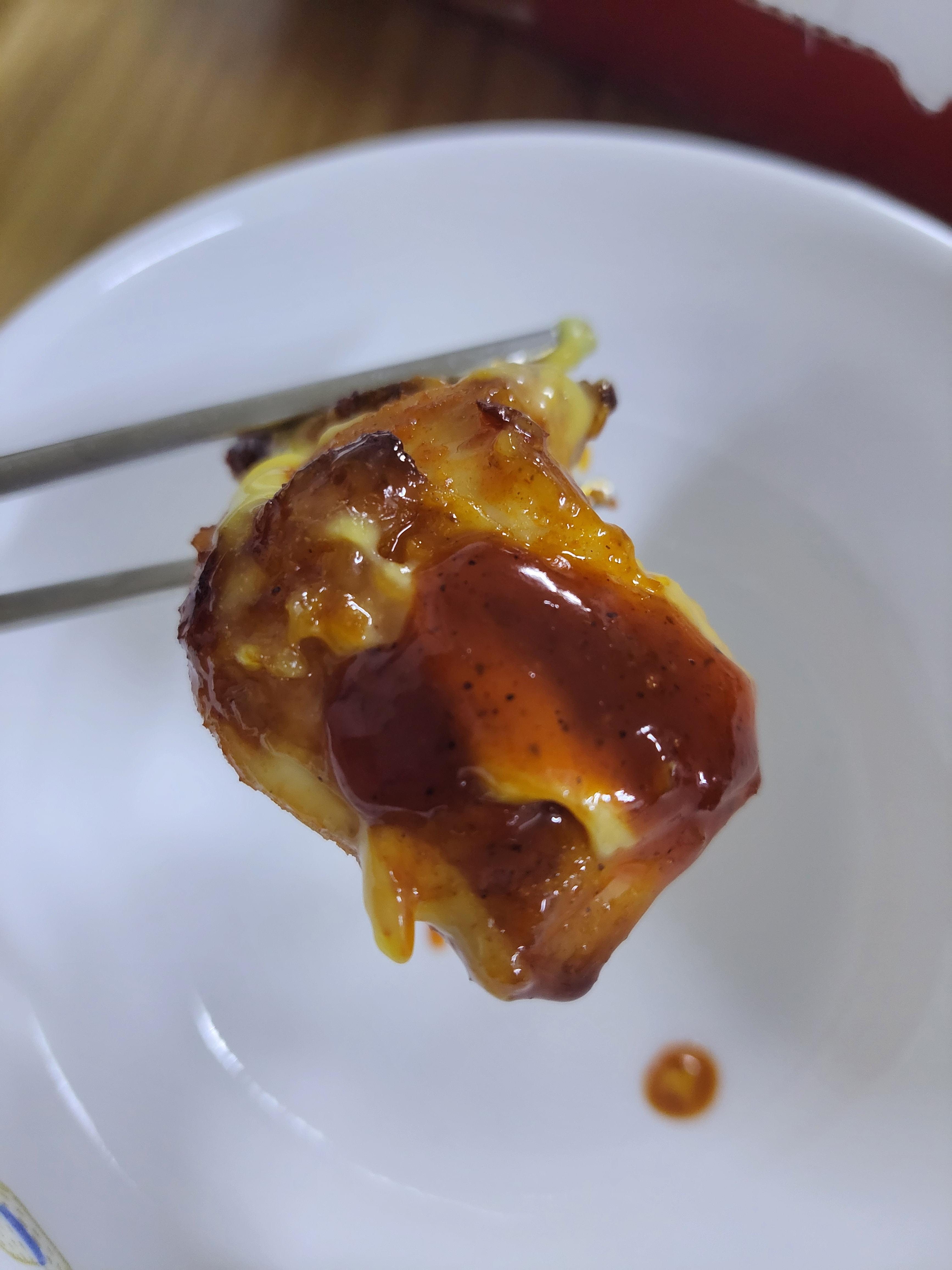 그냥 그대로 먹으면 달콤한 맛이 조금 더 강해서 매운 맛이 조금 덜 느껴지지만, 오매불맛 소스를 얹으니 매운맛이 더 살아나면서 그 뒤에 달달한 맛이 커버를 쳐줍니다.
