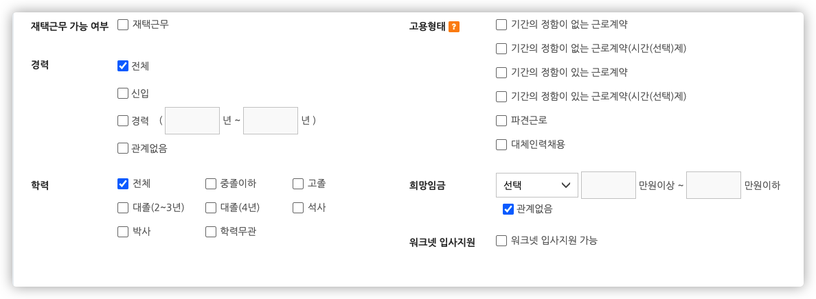 물론 이 밖에도, 메인화면에서는 볼 수 없지만 더 많은 채용 공고를 자세한 검색조건 설정 등으로 맞춤형 공고를 확인하는 방법이 있습니다.
