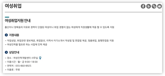 직업상담 뿐만 아니라, 취업 정보 및 취업 연결도 도와주며, 취업을 위한 자소서 작성 및 면접 방법도 코칭해준다고 하니 상대적으로 취업에 두려움을 안고 있는 경력단절 여성이나 취업 경험이 없는 여성분들은 해당 제도를 적극적으로 활용하시는 것을 추천드립니다.