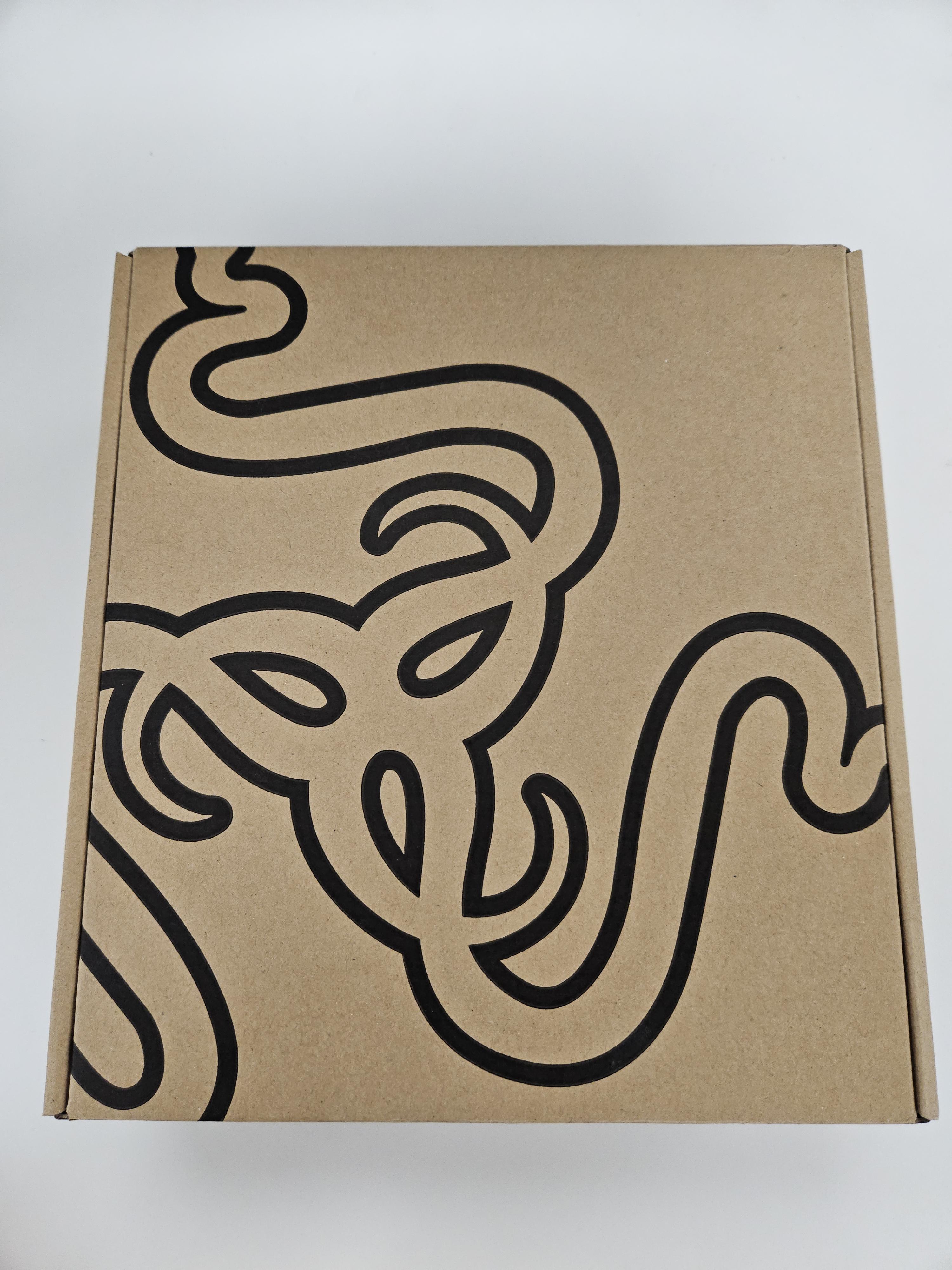 레이저 크로마 스탠드 v1 패키징입니다. 친환경적인 종이박스 형태로 되어 있고, 레이저 로고가 매우 크게 인쇄되어 있습니다.