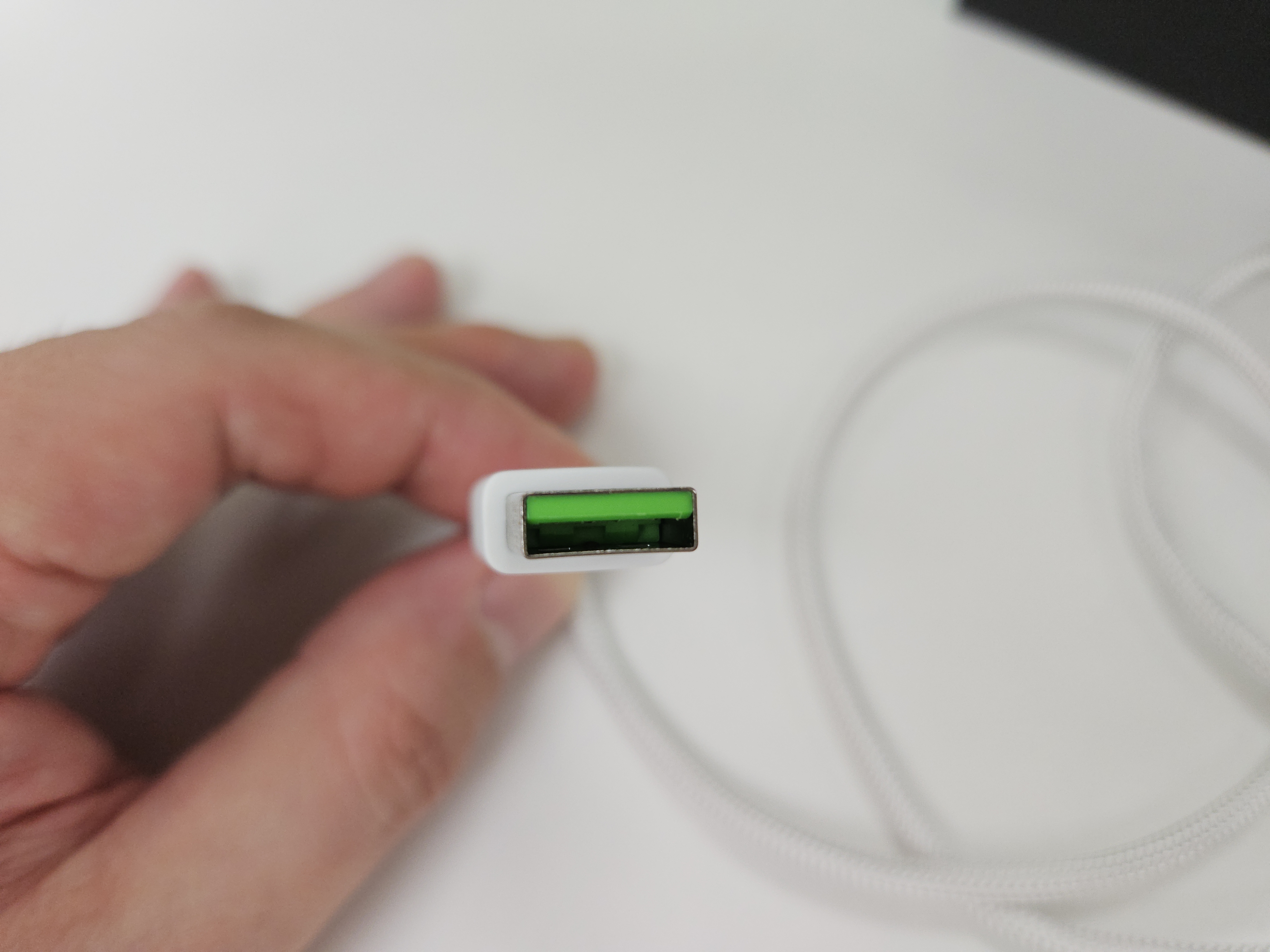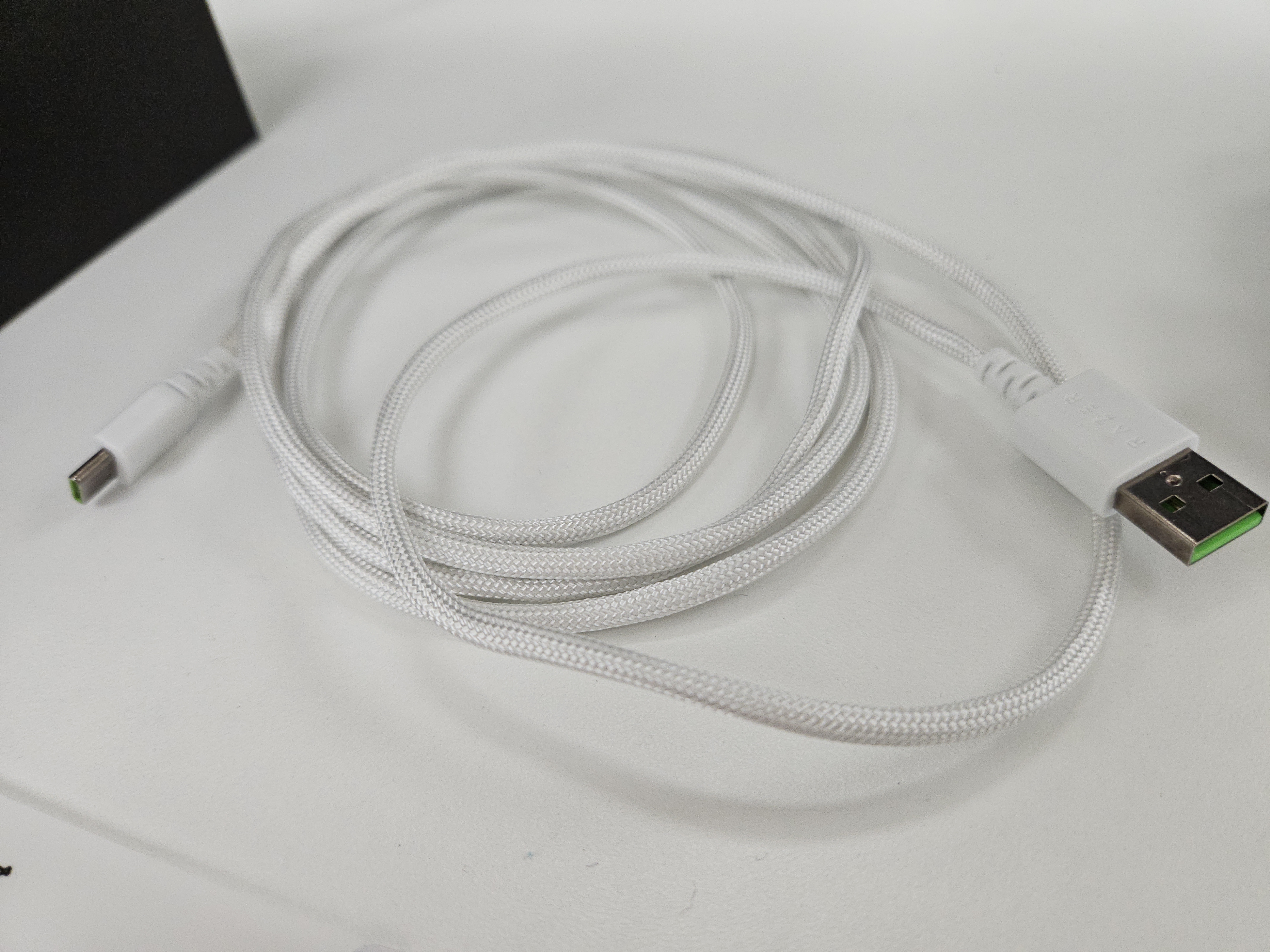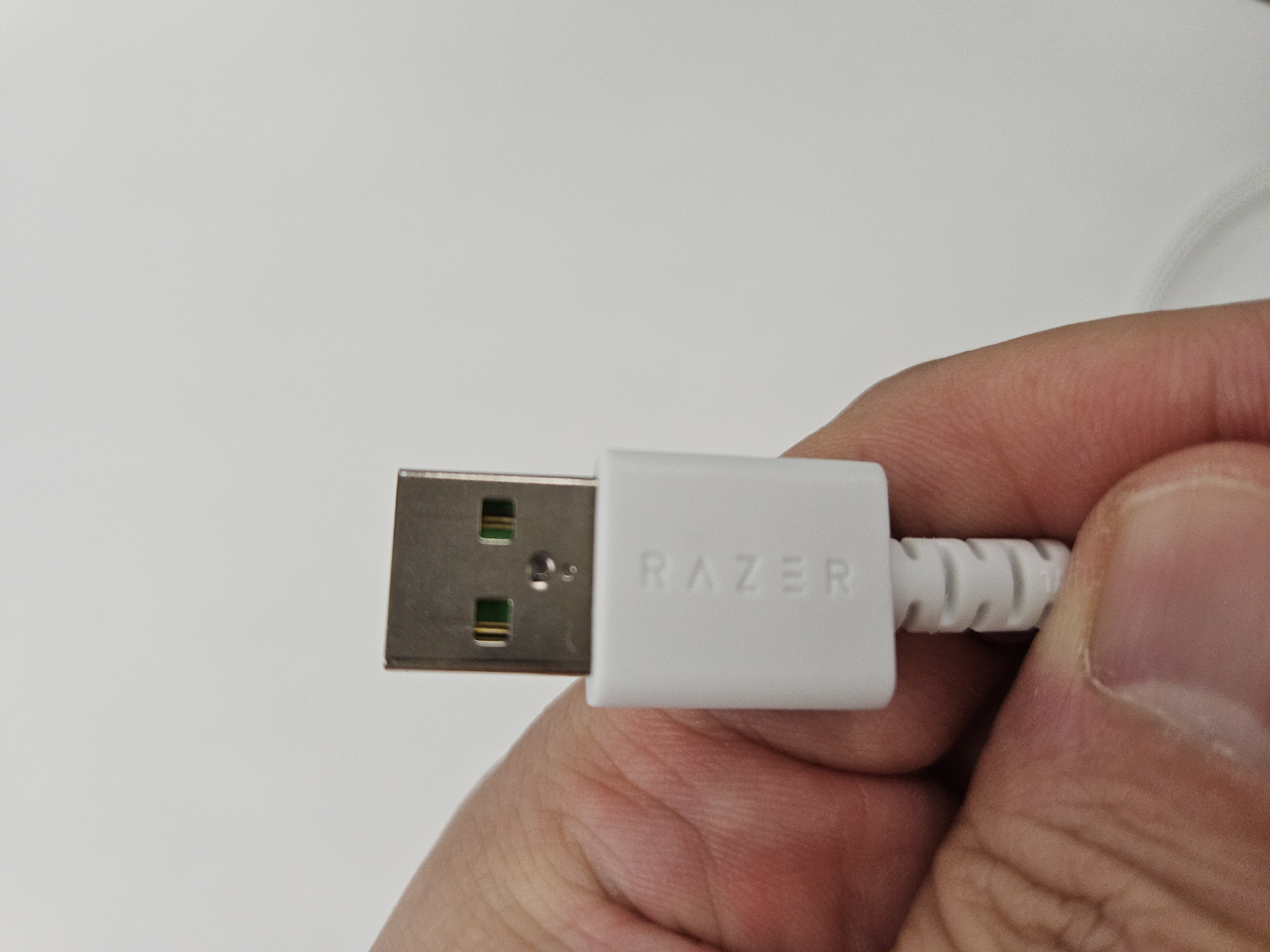 usb 케이블에 있는 razer 로고와 더불어 usb 안쪽의 녹색이 나 레이저다라고 말하고 있네요.
