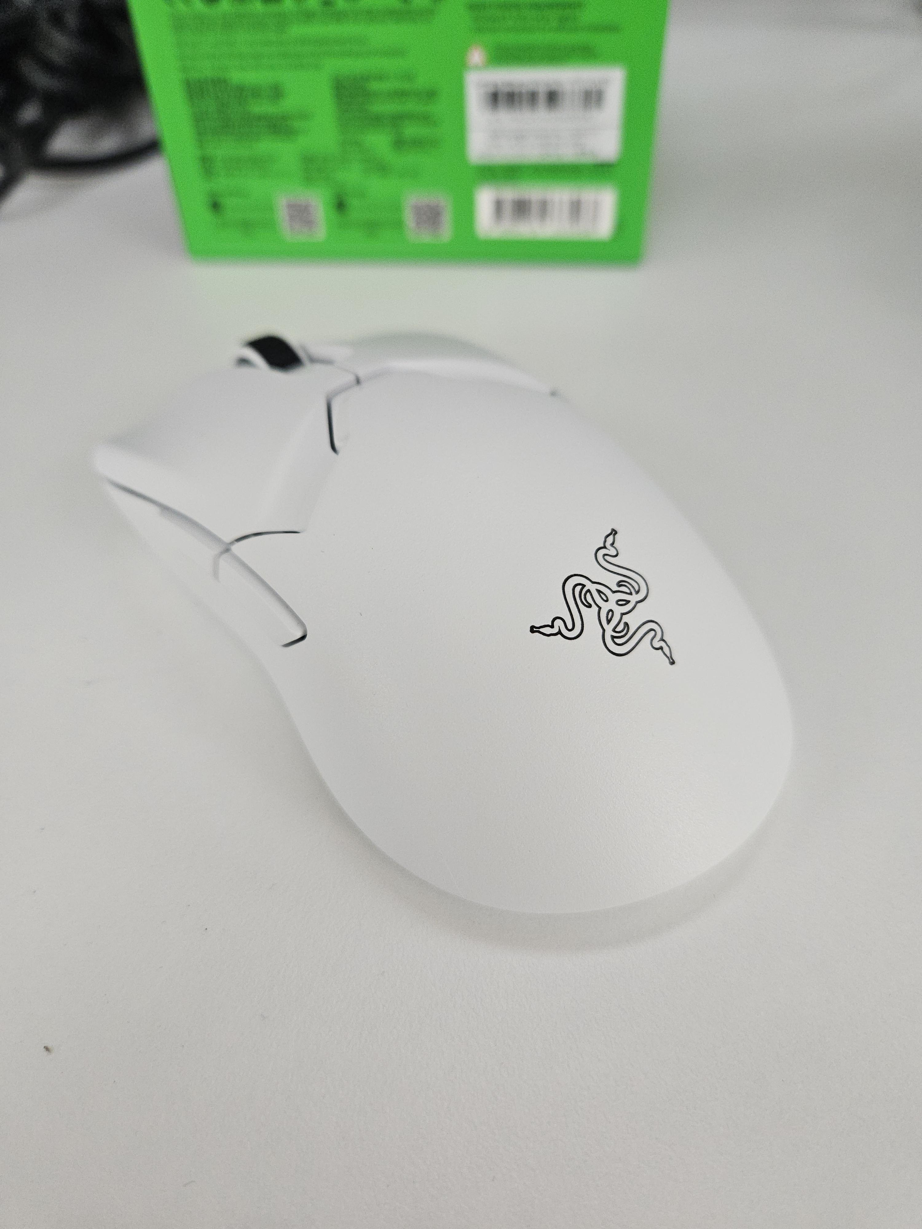 그럼에도 불구하고, 레이저 머큐리 특유의 예쁜 화이트 색상과 검은색 레이저 로고, 그리고 충격적으로 가벼운 무게는 레이저 바이퍼 v2 pro 머큐리에서만 느낄 수 있는 매력 포인트였습니다.