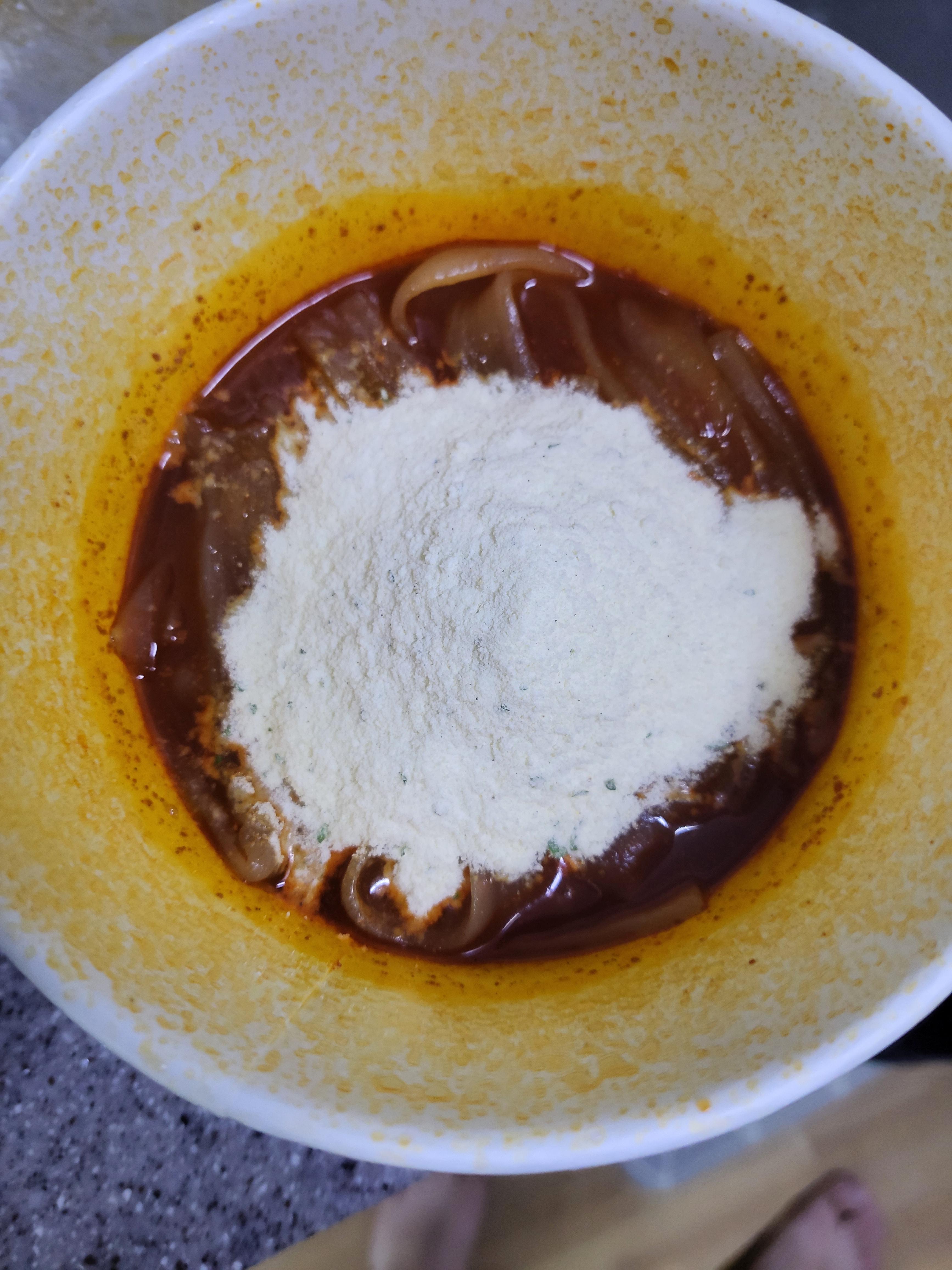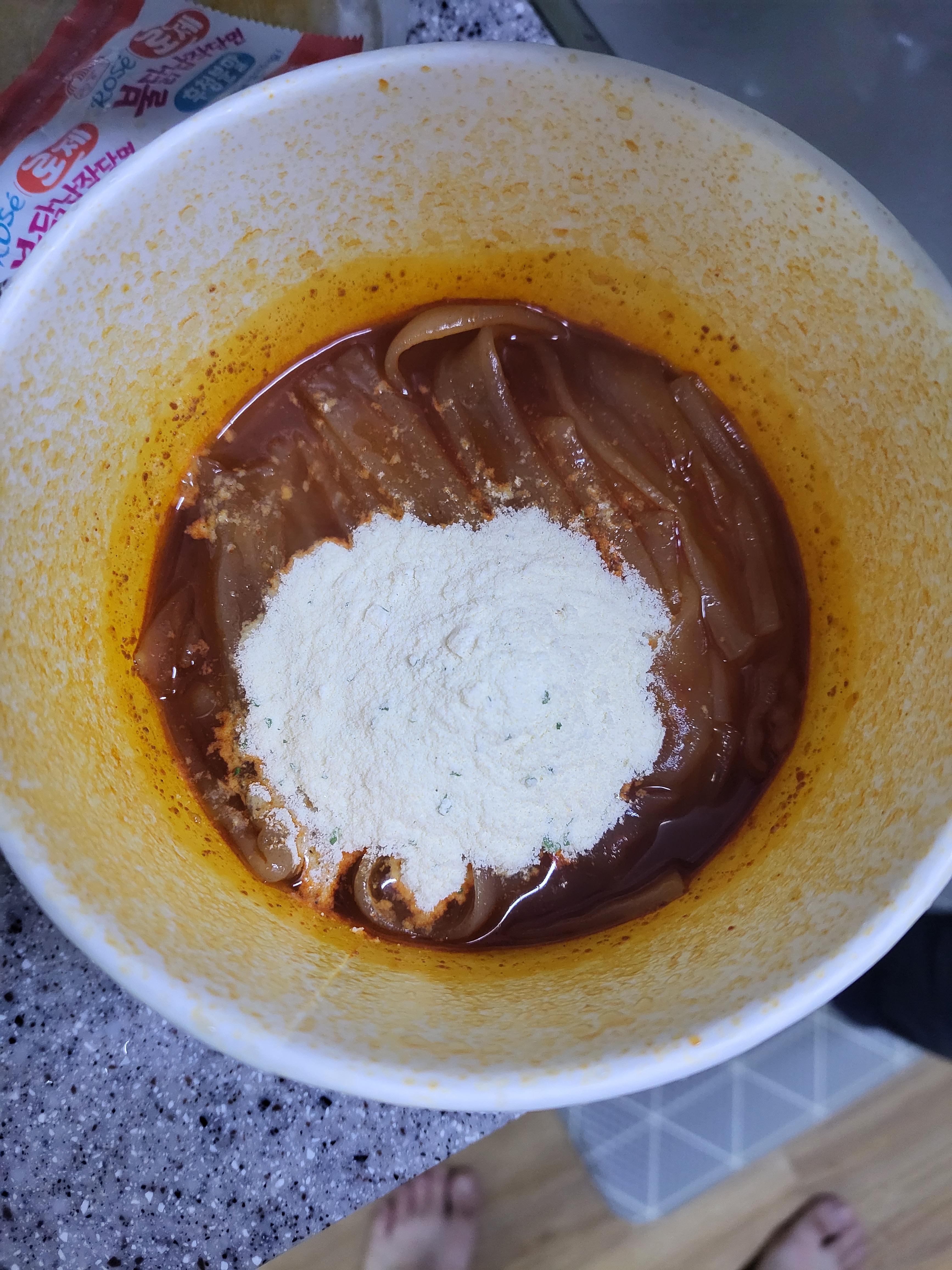 이 후첨분말 스프의 양을 조절해서 조금 덜 느끼하고 더 맵게 드실 수도 있을 것 같습니다.