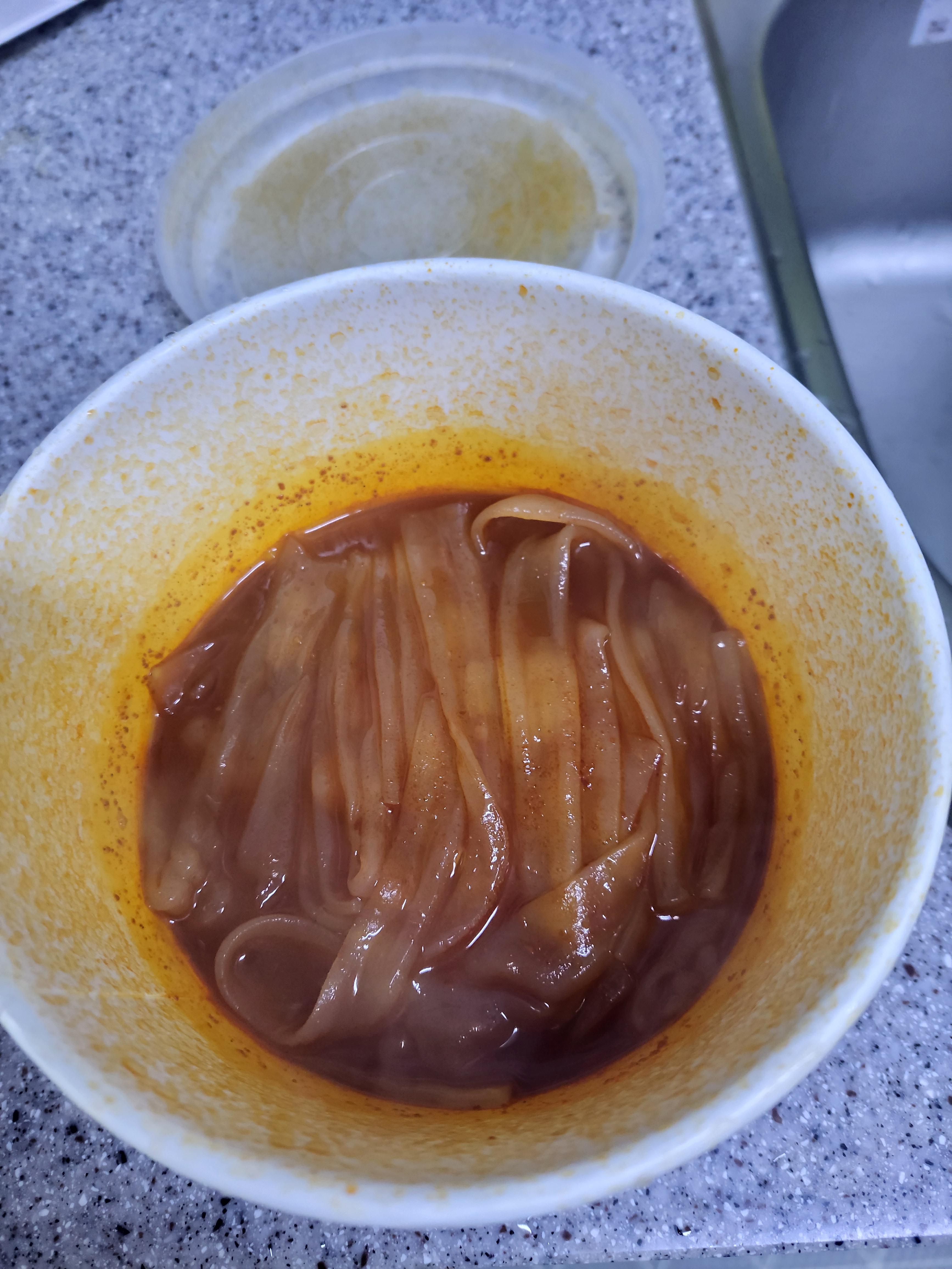 전에 로제 불닭볶음면을 먹어봤기 때문에, 로제 불닭납작당면 역시 맛은 비슷할 거라는 생각을 가지고 있었습니다. 다만 컵라면인 로제 불닭볶음면과는 조리방법이 살짝 달랐고, 불닭떡볶이 같은 컵떡볶이와 유사한 조리방법입니다. 전자레인지가 없으면 조리가 불가하기 때문에, 뜨거운 물만 부어서 드실 수 있는 여건이라면 드시기 어려울 수도 있습니다.