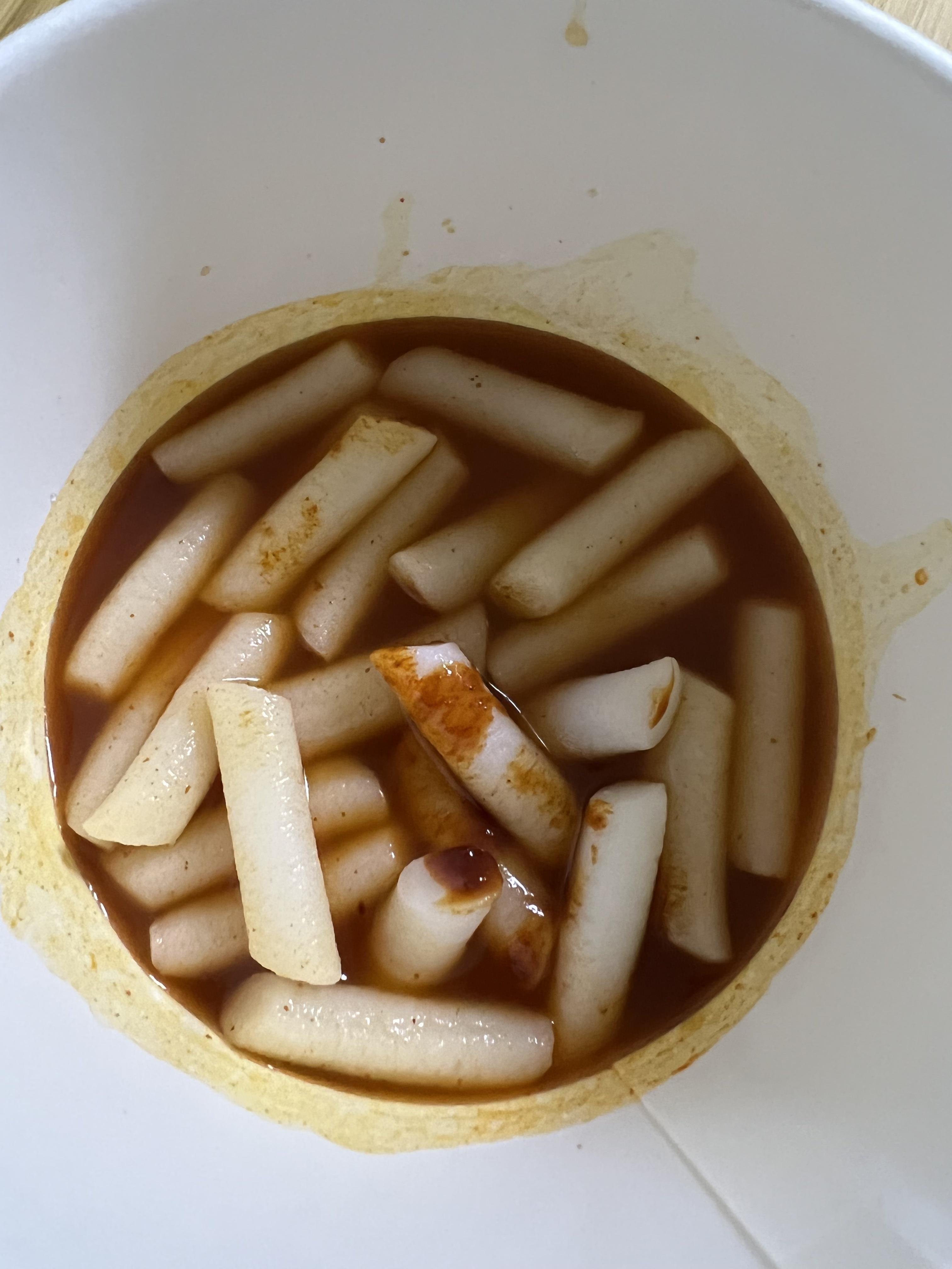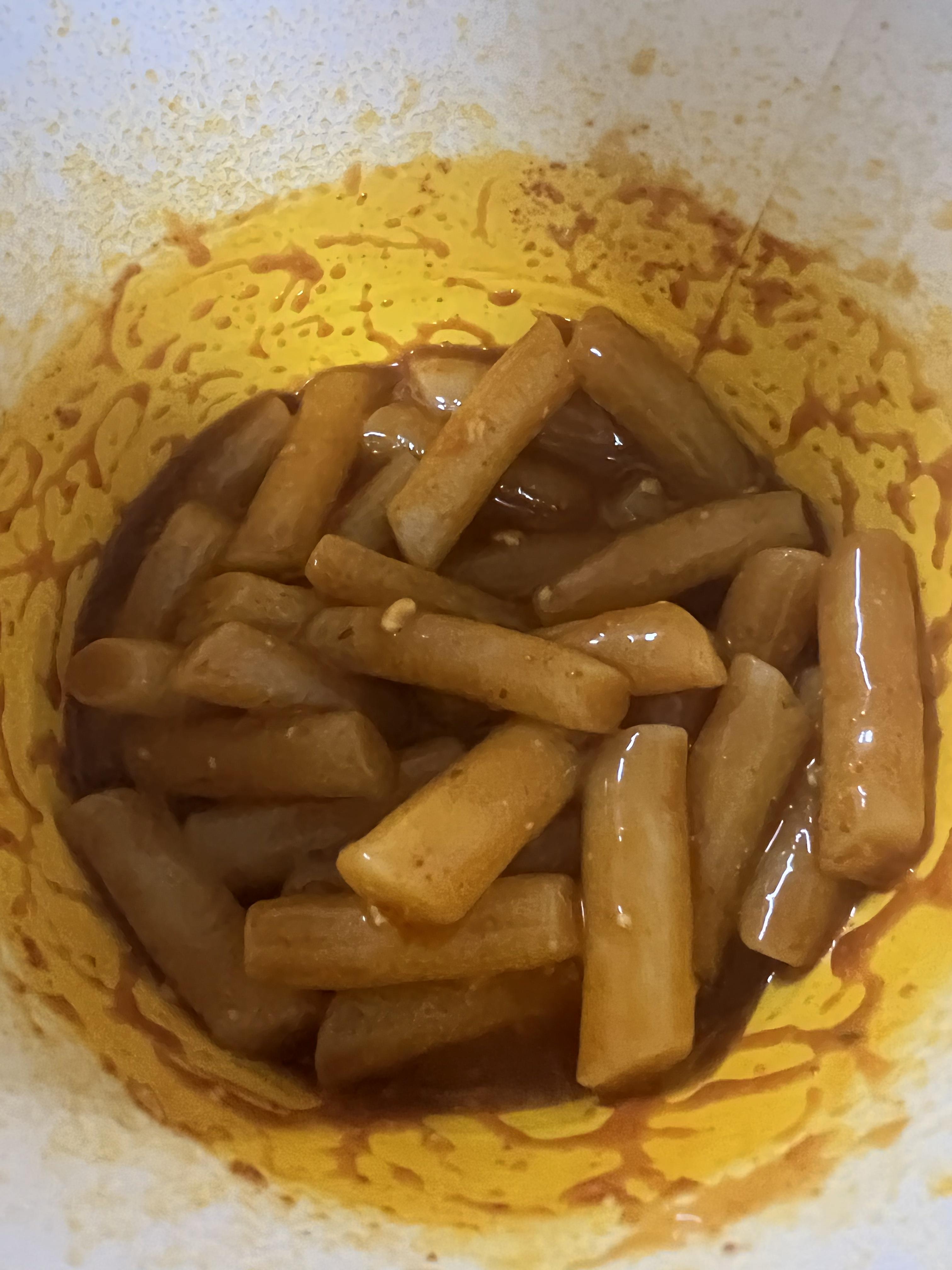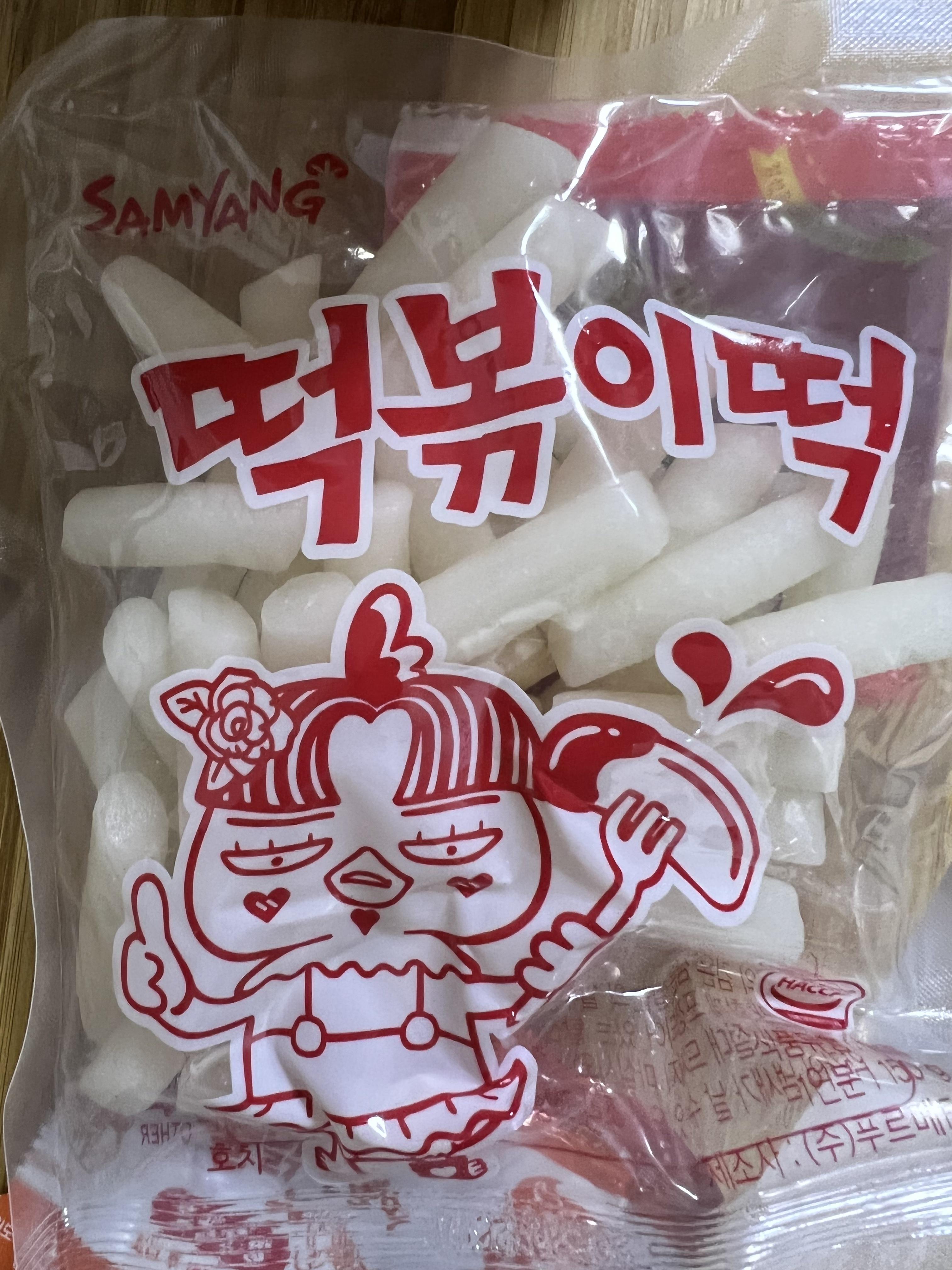 로제 불닭 떡볶이 떡볶이 떡입니다. 쌀떡입니다. 저는 밀떡 파인 데요, 쌀떡과 밀떡은 짜장이냐 짬뽕이냐 정도의 난이도인 것 같습니다.