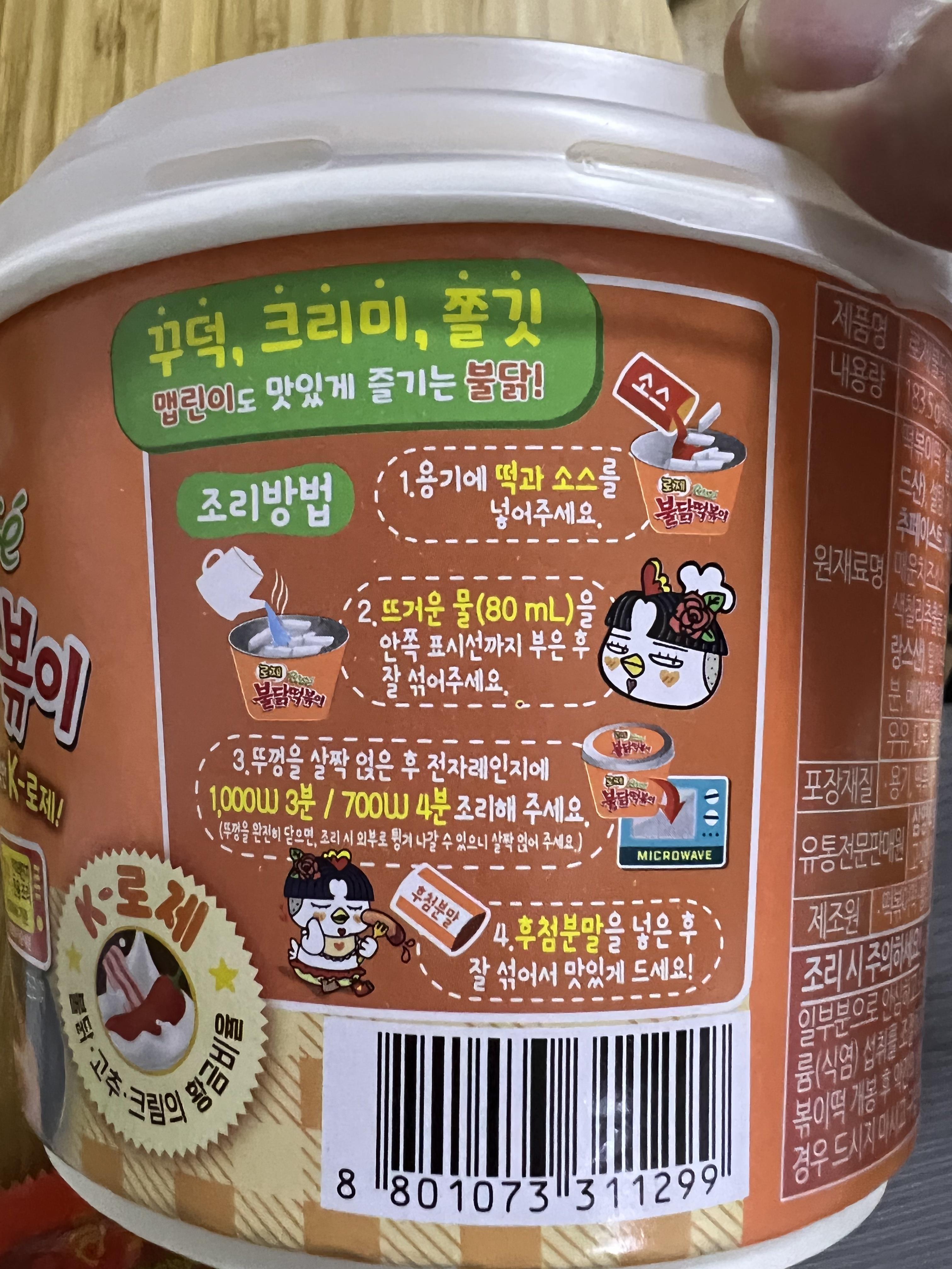 로제 불닭 떡볶이는 쌀떡 때문에 반드시 전자레인지 조리를 하여야 드실 수 있습니다.
