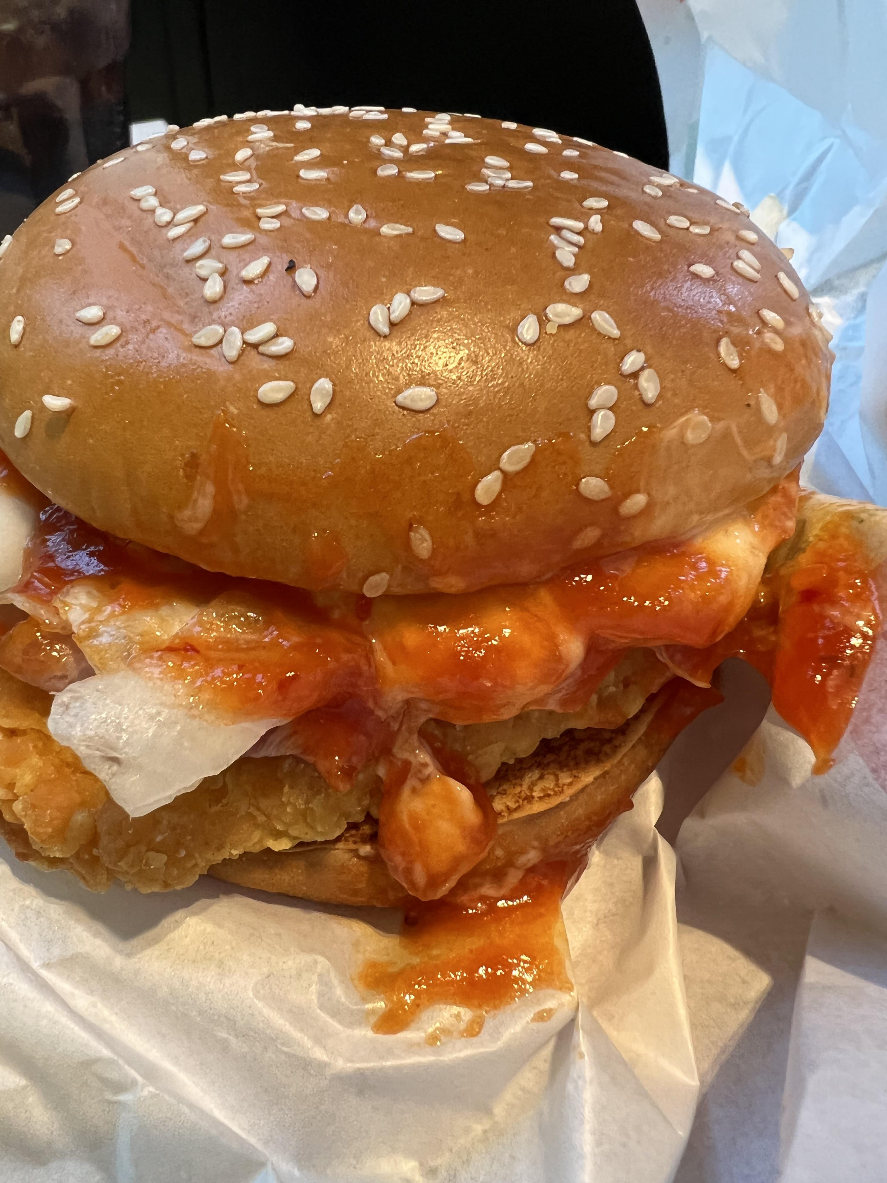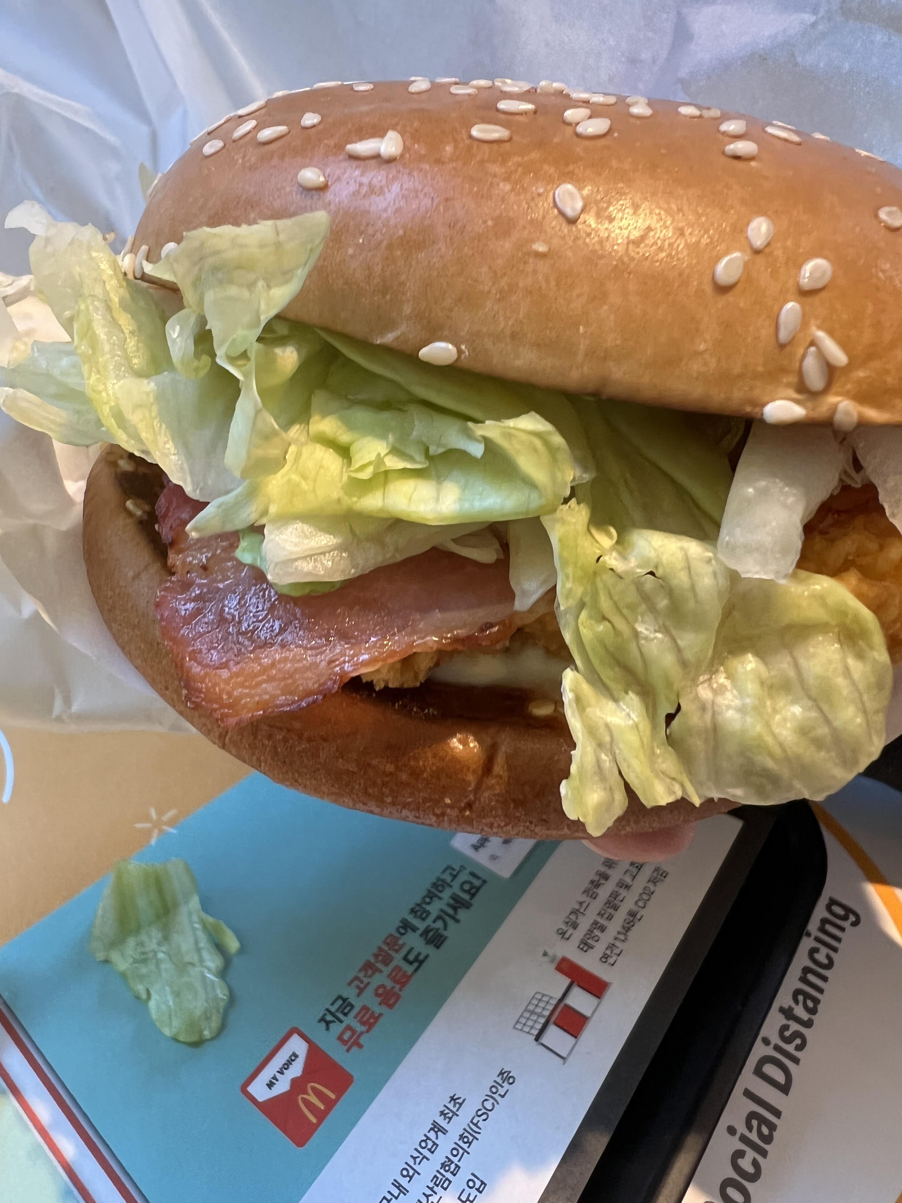 치킨 패티는 생각보다 촉촉하고, 상하이 치킨 버거처럼 매콤한 맛의 패티는 아니었습니다.