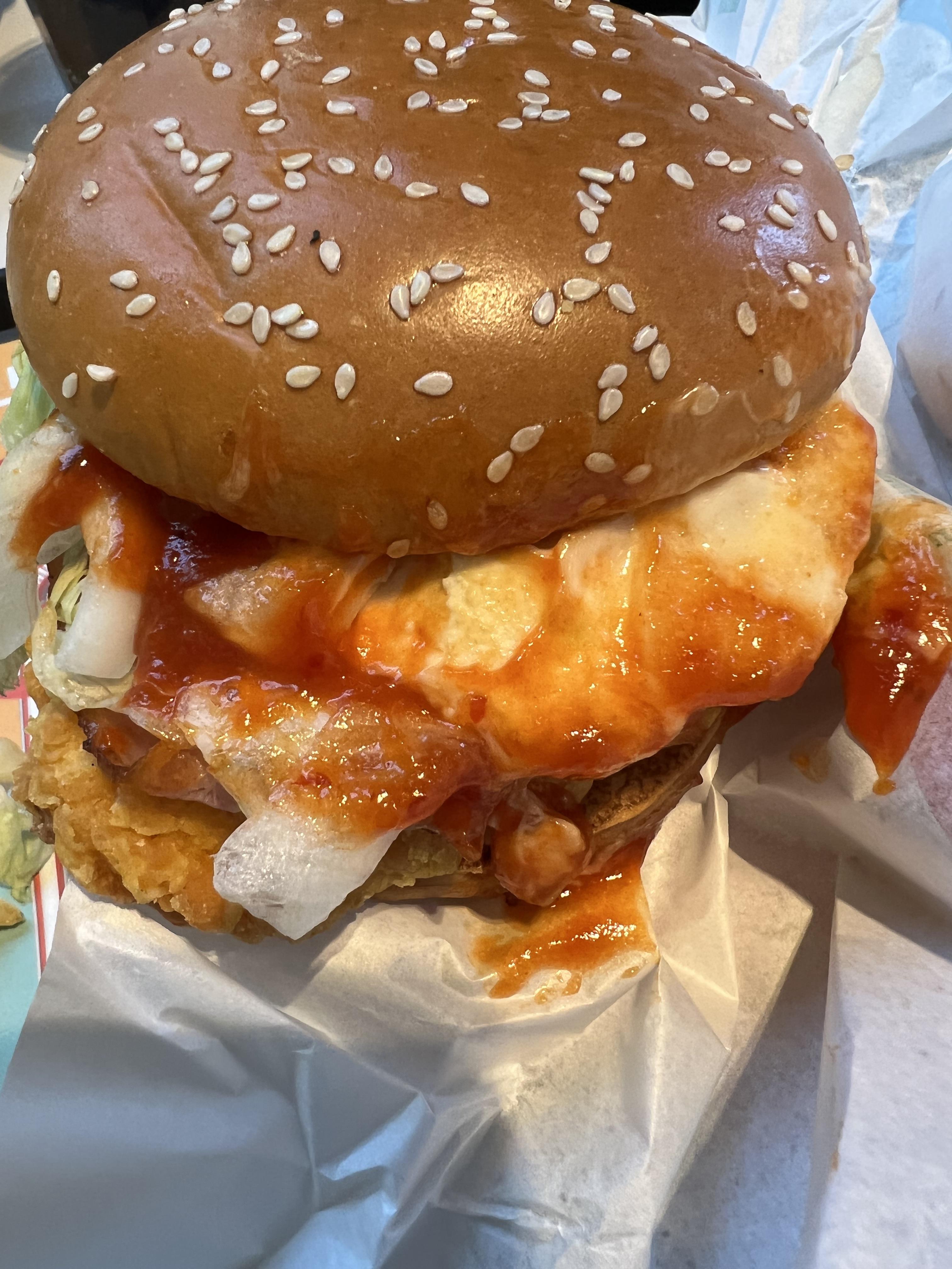 상하이 치킨 버거보다는 살짝 얇은 치킨 패티지만 두께 자체는 그래도 그렇게 얇진 않아 보입니다.