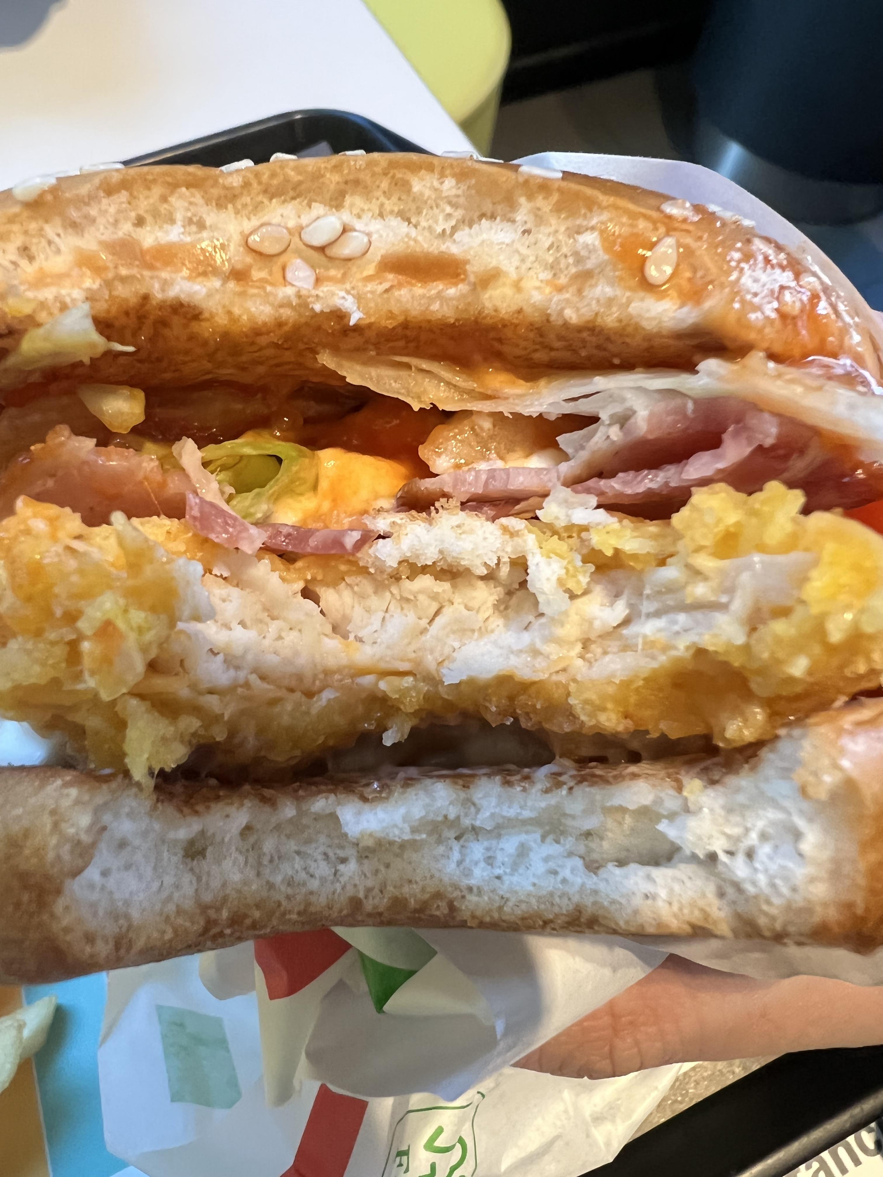 상하이 치킨 버거보다는 살짝 얇은 치킨 패티지만 두께 자체는 그래도 그렇게 얇진 않아 보입니다.