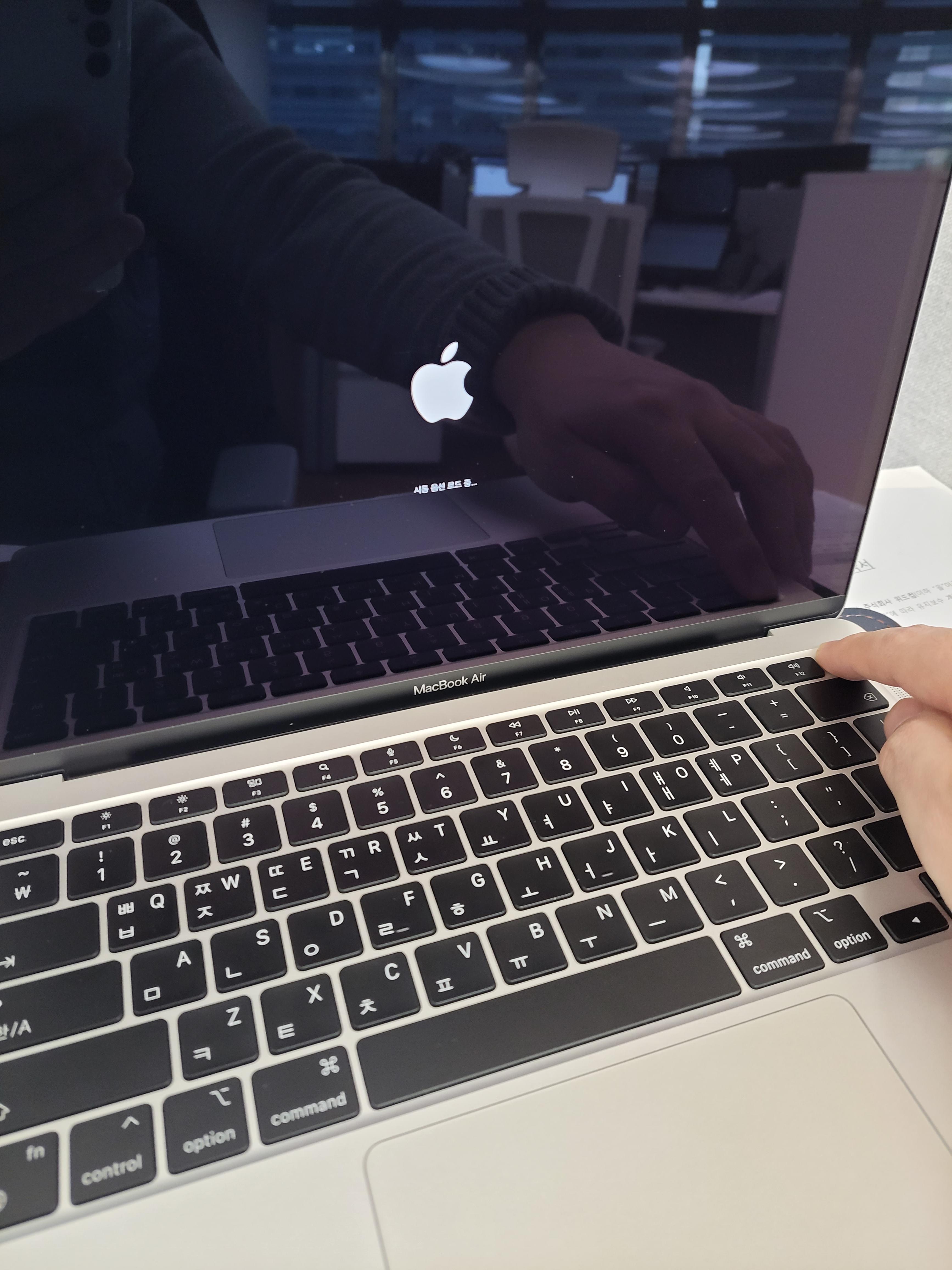 3. 시스템 종료 후, 맥북에어 m1 전원 on : 전원 버튼을 길게 누르고 있기