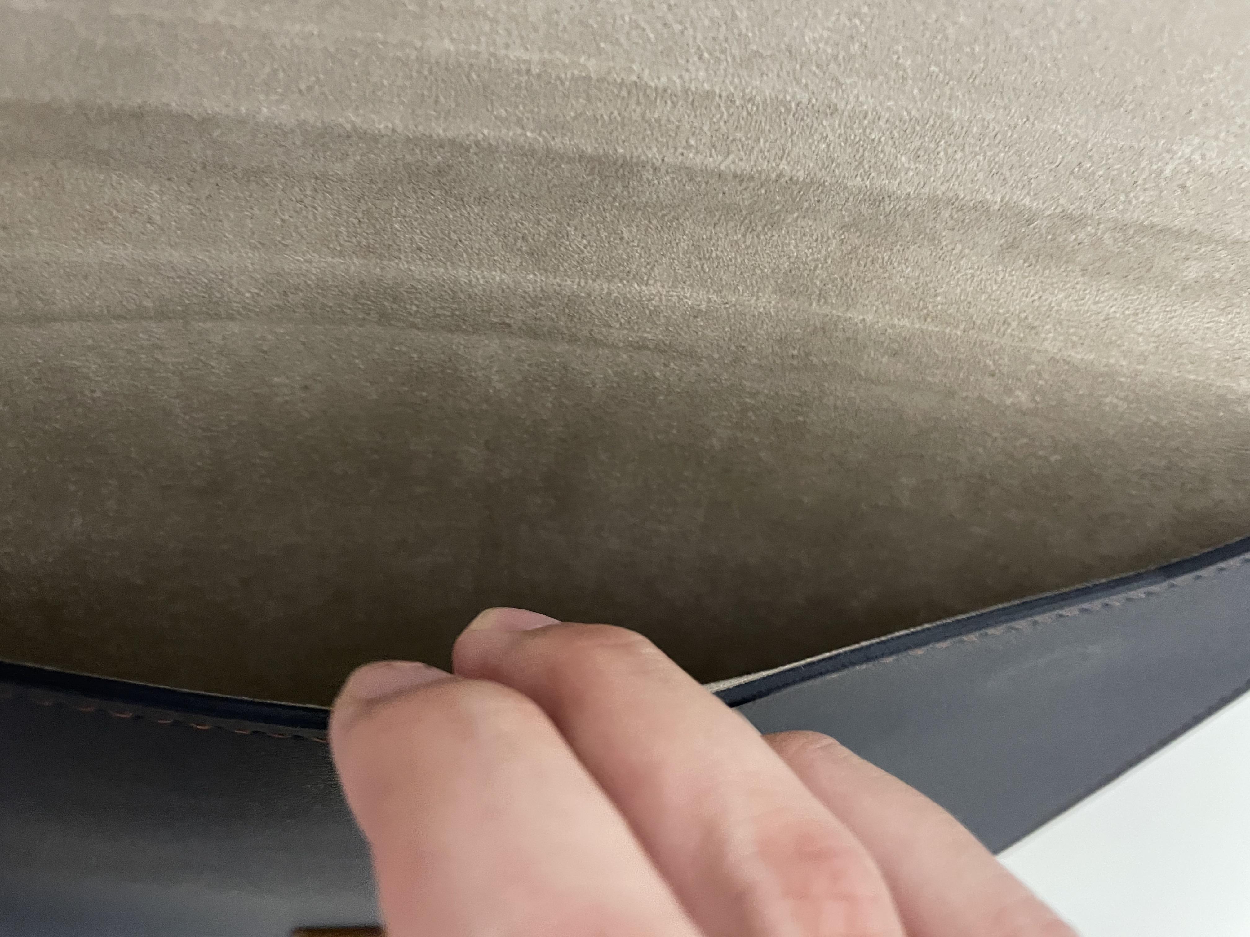파우치에서 가장 중요하다 할 수 있는 안감입니다. 스웨이드 재질은 아니고, 스웨이드 못지않게 부드러운 가죽 재질로 되어 있습니다. 기스날 염려는 없어 보입니다.