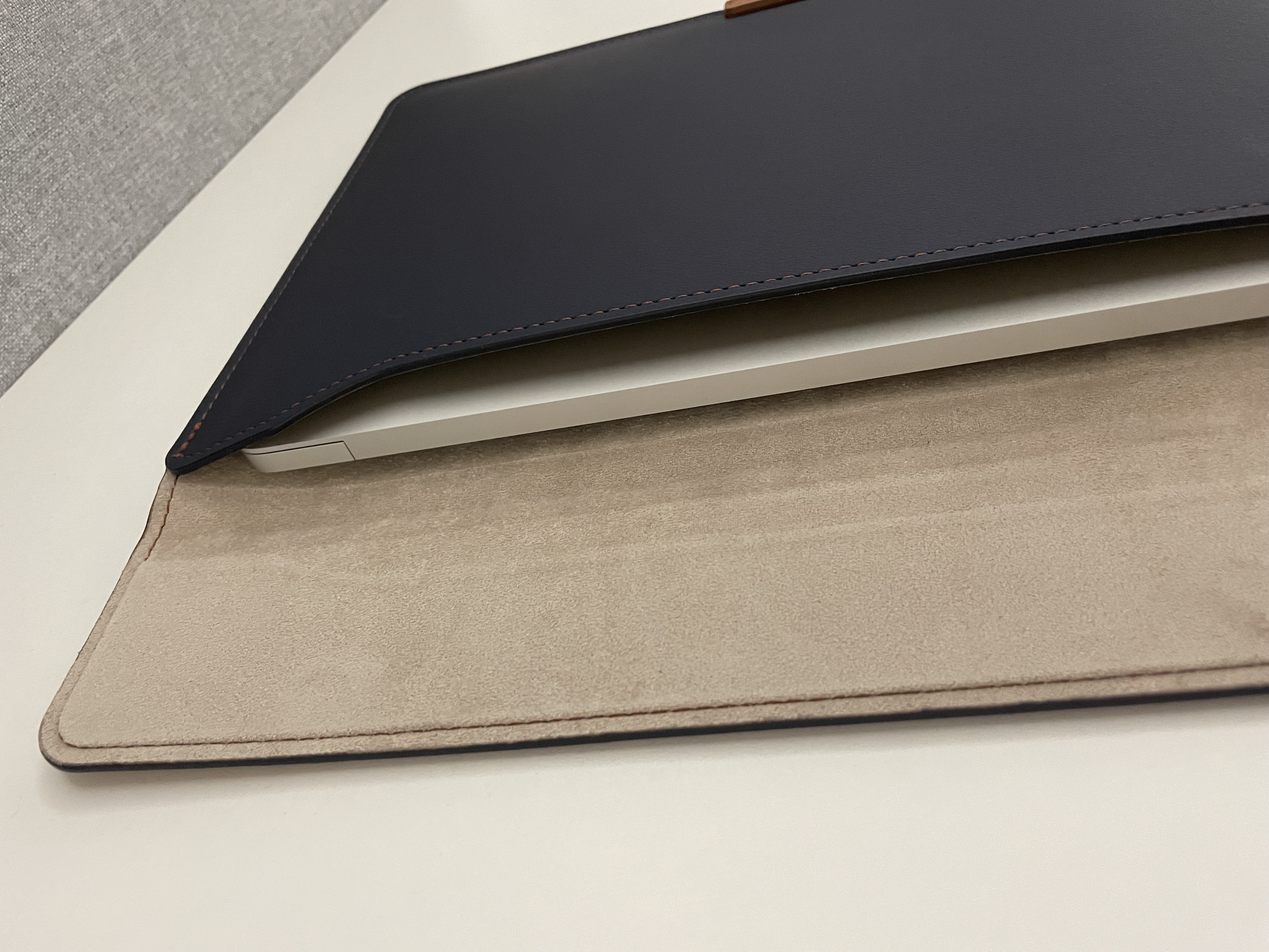 비파인 맥북 파우치의 장점 중 하나는, 가죽이 전체적으로 두툼해서 단순 기스 보호 뿐만 아니라 일정 수준의 낙하에도 어느 정도 보호가 충분히 될 것 같아서 만족스러웠습니다.