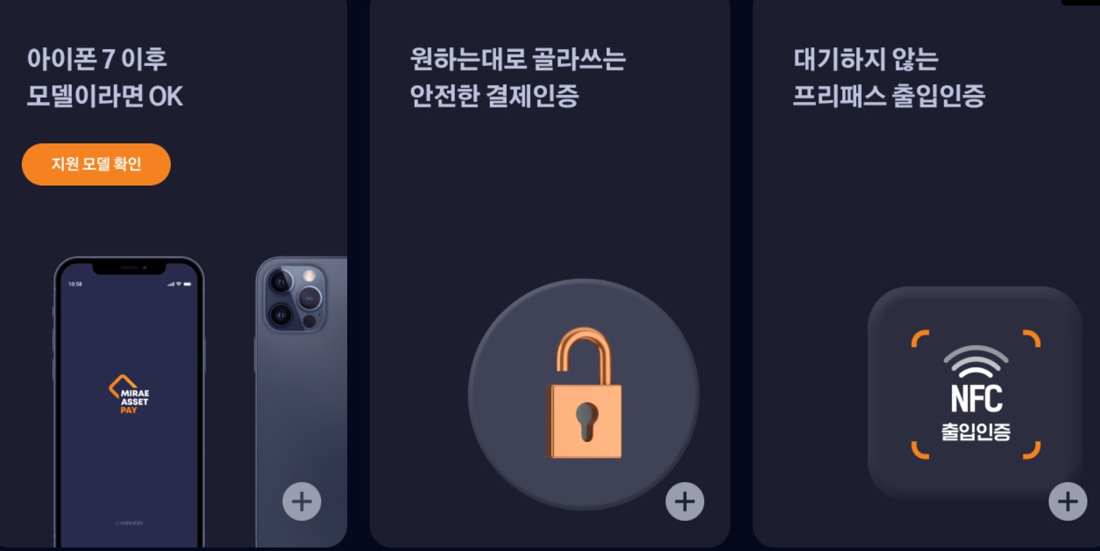 미래에셋페이는 기존에 우리가 많이 알고 있는 삼성페이의 킬러 기능인 MST(마그네틱 보안 전송) 기능과는 다른 NFC 기반의 페이로 출시되었습니다.