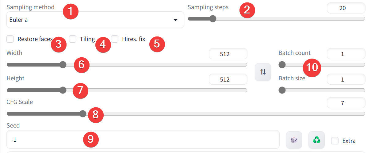 어떤 그림이 완성되면, 그림마다 고유의 Seed값이 있습니다. 이 Seed 자리에 해당 그림의 시드값을 넣으면 그 그림을 기반으로 하여 프롬프트를 반영해서 그려줍니다. -1이 기본값이며, -1은 랜덤을 의미합니다.