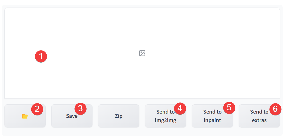 4,5,6) 이 버튼들이 매우 편리하고 중요한 기능인데요, 완성된 이미지를 다른 작업이 가능한 메뉴(img 2 img, inpaint, send to extras)로 바로 보낼 수 있는 기능입니다.
