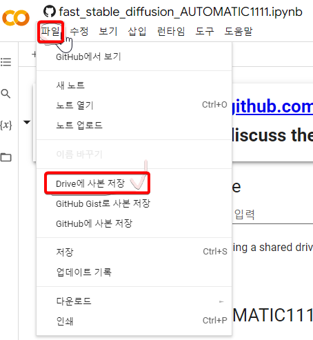 스테이블 디퓨전 코랩 설치