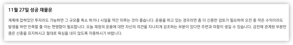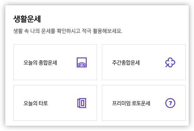 유료로 운세를 보는 방법도 좋지만, 가벼운 마음으로 운세 확인을 하고 싶을 때는 무료운세를 통해 보는 것이 더 나을 수도 있습니다.