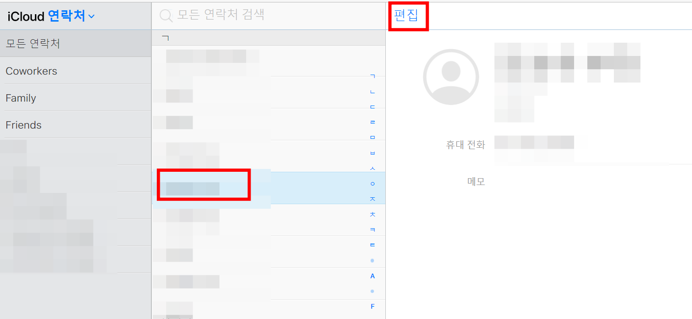 아이클라우드 연락처 편집에서 손쉽게 아이폰 연락처 초성 검색이 되도록 편집이 가능합니다.