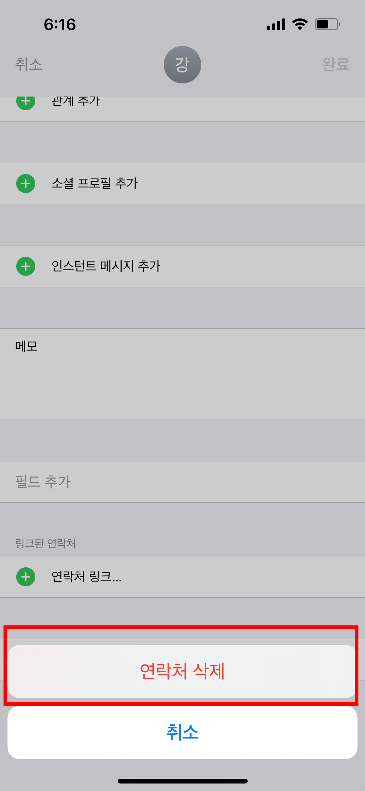 연락처 삭제를 눌러주시면, 아이폰 연락처 삭제가 완료됩니다.