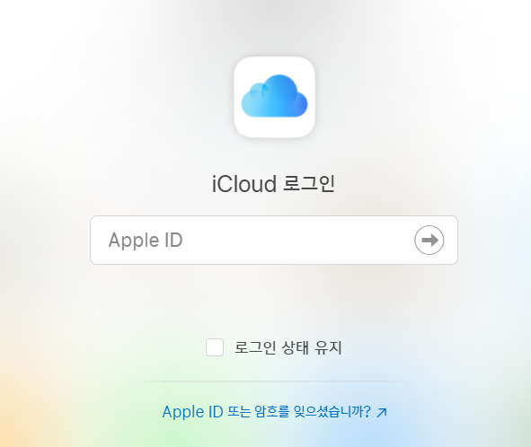 아이클라우드 홈페이지에 들어오시면, 아이디와 비밀번호를 입력하는 화면이 나옵니다.