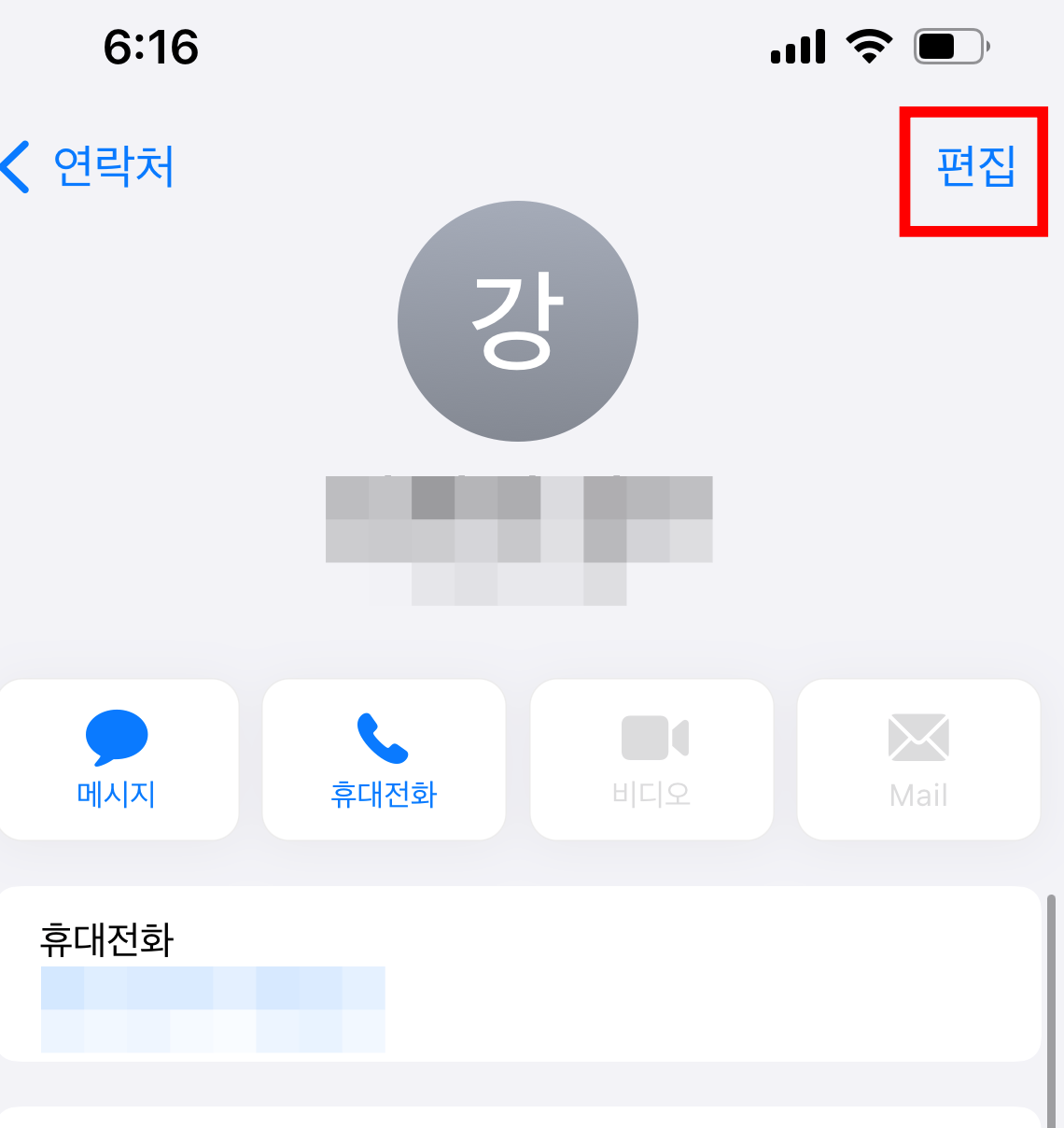 지우고자 하는 연락처가 나오면, 우측 상단 편집을 눌러줍니다.