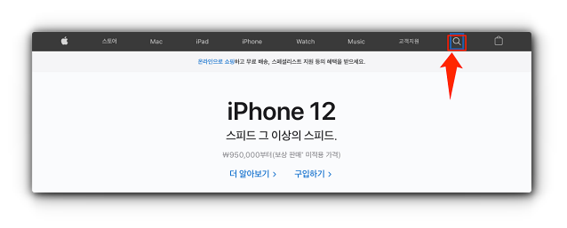 3) 애플 홈페이지 접속 후, 우측 상단 돋보기 버튼을 눌러서,"보.증 정보 확인"이라고 입력해줍니다.