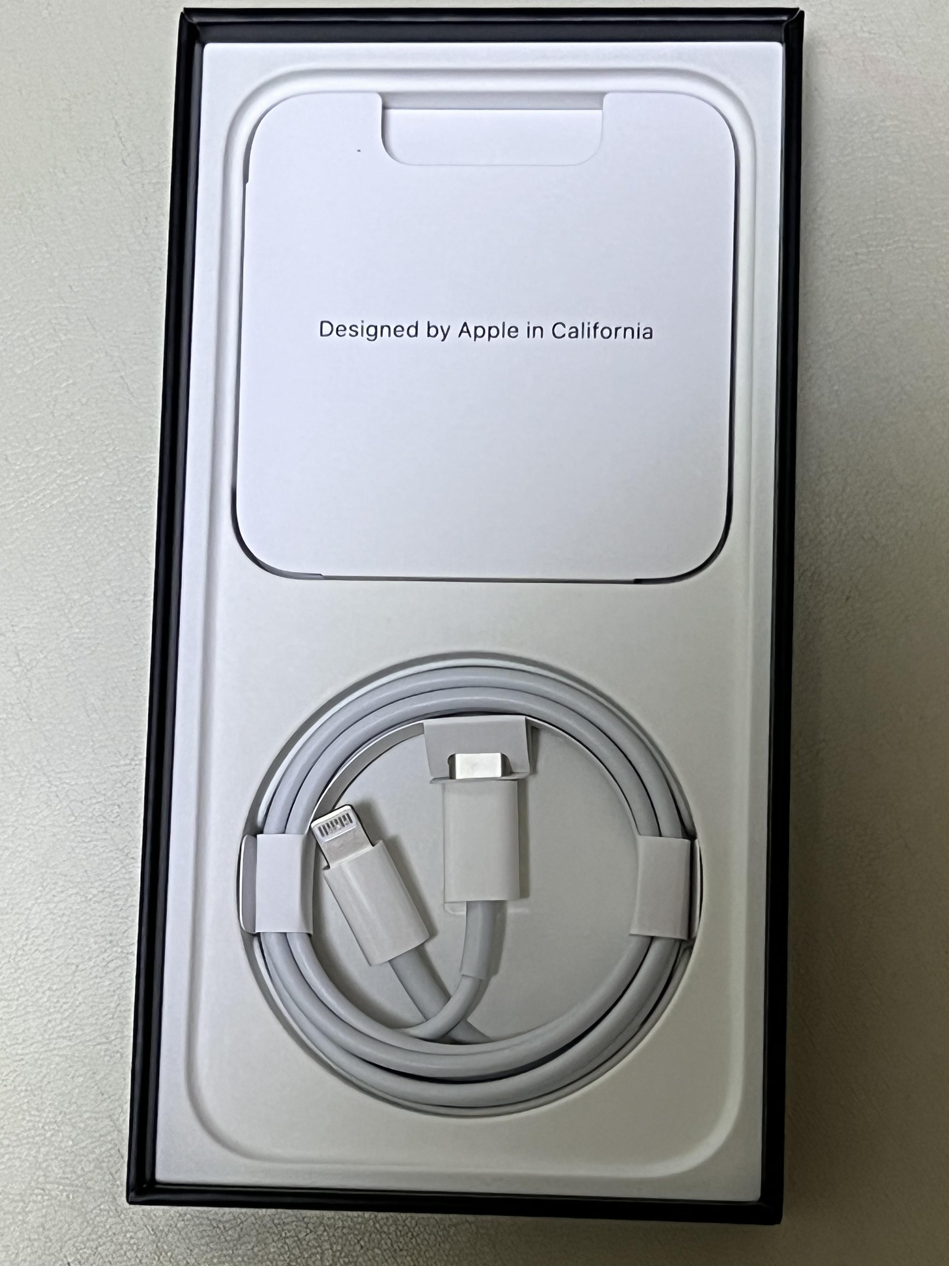 박스를 열면, 언제나 그렇듯 Designed by Apple in California와 함께 C to 라이트닝 케이블, 환경을 생각한 충전 어댑터(는 제외) 및 간단 사용 설명서가 들어 있습니다.