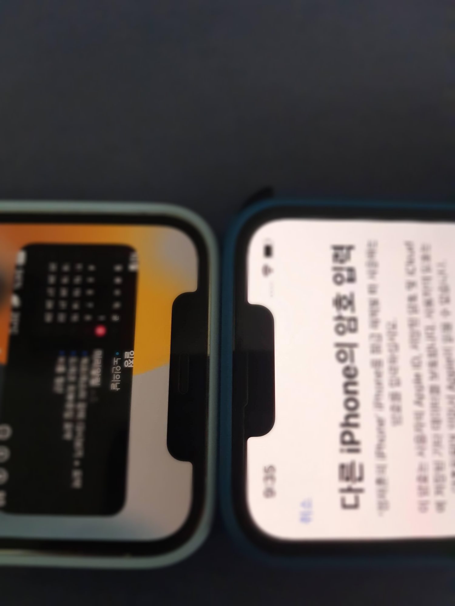 아래 사진은, 아이폰12 프로 초기 설정화면을 아이폰13프로 접사로 찍은 사진입니다.