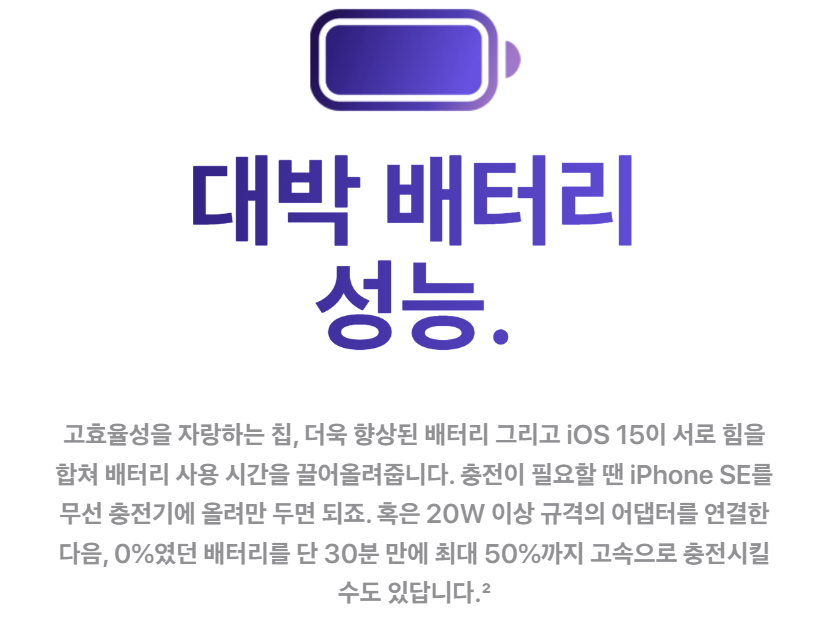 다만 이번 아이폰 SE 3에는 최신 칩셋인 A15 바이오닉 칩셋이 탑재되면서, 아이폰 SE 라인업 최초로 5G 통신을 지원하게 되었습니다. 다만 많은 분들이 자급제로 구매하시고, 아이폰 SE의 경우 전통적으로(?) 배터리가 짧은 경향이 있기 때문에 아이폰 SE 3에서 5G 통신을 얼마나 사용하실지는 잘 모르겠네요. 아마 많은 분들이 아이폰 SE 3 자급제와 알뜰폰 요금제 조합을 선호하시리라 생각됩니다.
