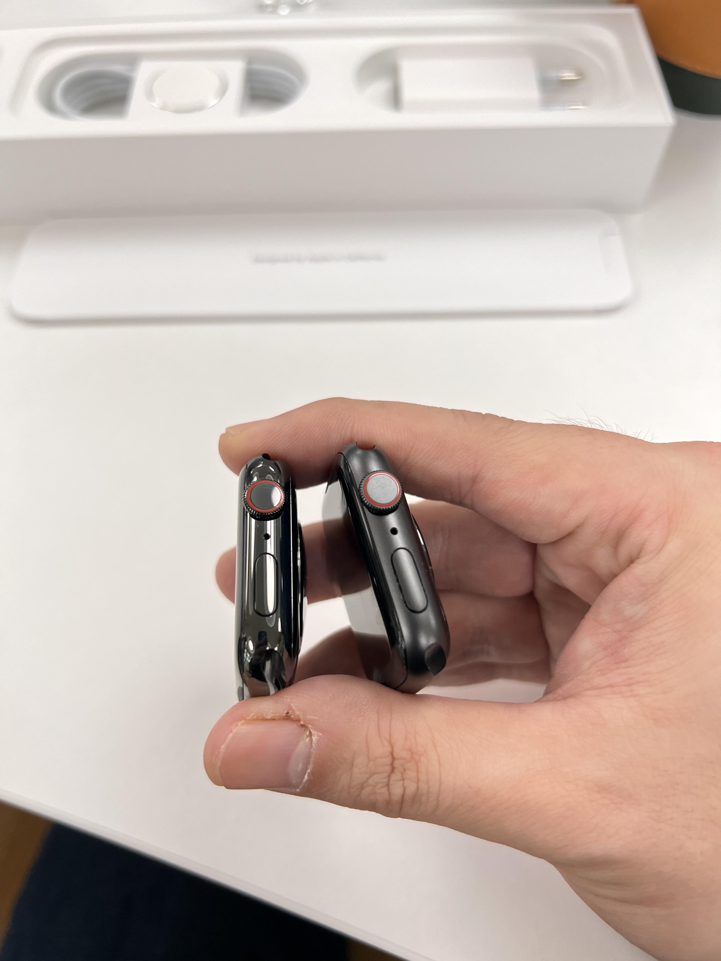 애플워치 알루미늄(우) 스테인리스(좌) 무게 차이