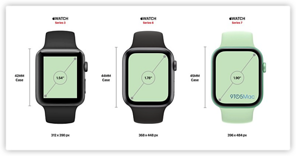 사진과 같이, 애플워치 6 대비 살짝 더 커진 1.80인치가 될 것으로 예상이 되고 있습니다.