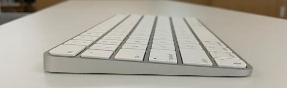 기존 매직키보드과 동일한 경사각과 두께로 굉장히 얇은 편입니다. 키보드 높이조절이 안 되는 점은 여전히 아쉬운 부분이지만, 기본적으로 경사가 있고 이 경사로 인해 그나마 불편함은 덜 느끼게 되는 것 같습니다.