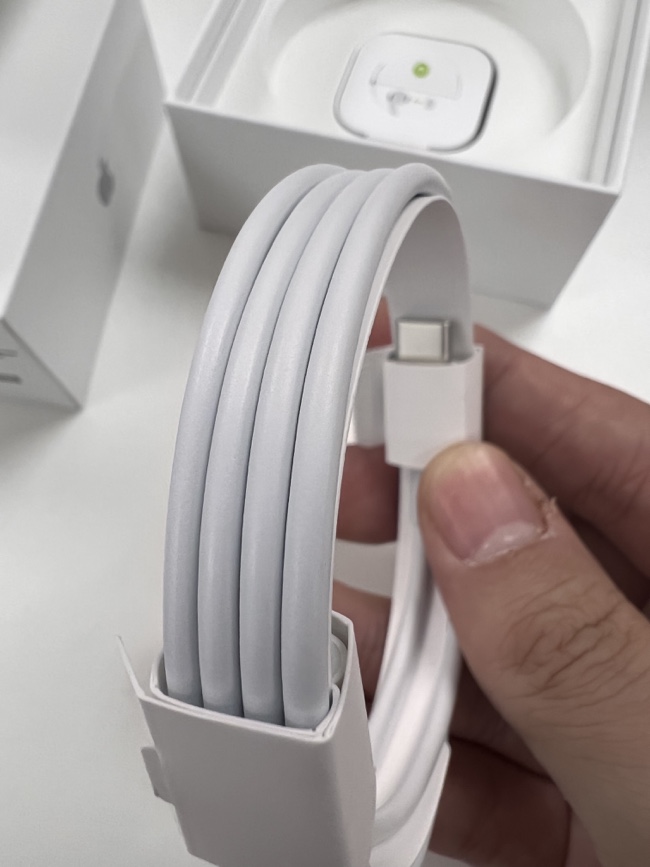 라이트닝 to C타입 케이블을 여전히 동봉해 준 점은 고맙지만, 요즘 애플 매직 키보드 같은 구성품으로는 패브릭 재질의 라이트닝 케이블을 동봉해 주던데 에어팟 프로 맥세이프 버전은 구형 케이블과 동일한 선재입니다. 그리고 여분의 이어팁이 들어 있습니다.