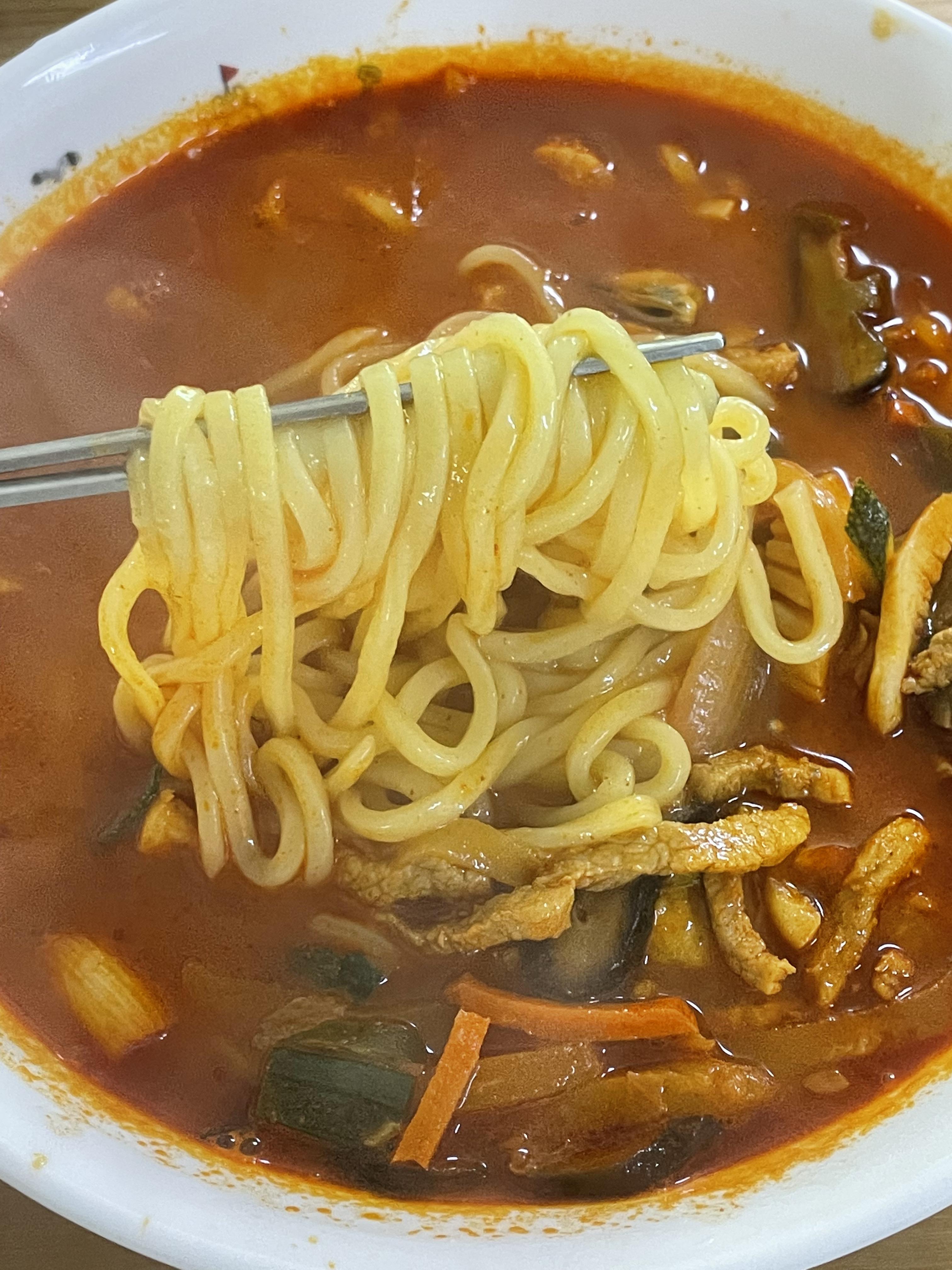 불닭x음면 같은 입에서 맴도는 매운 맛이라기 보다는, 마치 마라탕 같은 얼얼한 매운 맛 쪽에 더 가깝지만, 매울 신 한자가 써있는 그 라면 대비 최소 2배 이상은 매운 것 같습니다. 제가 매운 음식을 못먹는 편이 아닌데, 이연복 목란 짬뽕은 맵습니다.