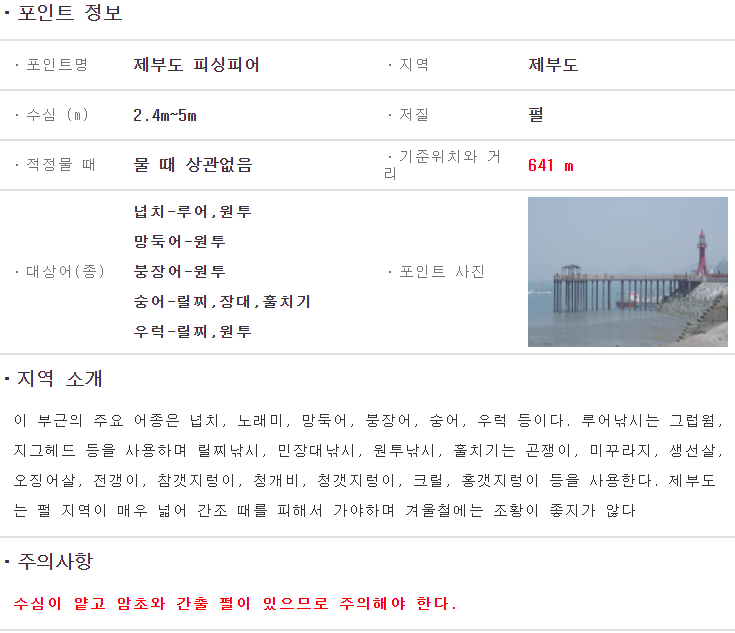 이렇게 사진으로 보시다시피, 제부도 인근 낚시 포인트 및 낚시 포인트 정보, 그리고 지역 소개와 주의 사항까지 친절하게 설명해 놓았습니다. 낚시 계획 있으신 분들은 바다타임닷컴에서 제공하는 낚시 포인트 꼭 참고하세요!