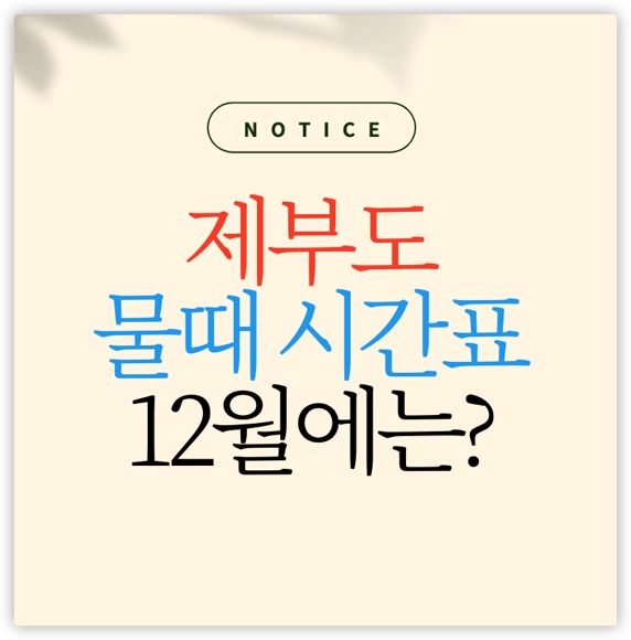 오늘은, 겨울 바다의 정취를 수도권에서 가장 가까운 곳에서 느낄 수 있는 제부도 물때 시간표가 12월에는 어떻게 되는지 아래의 내용을 통해 알아보도록 하겠습니다.